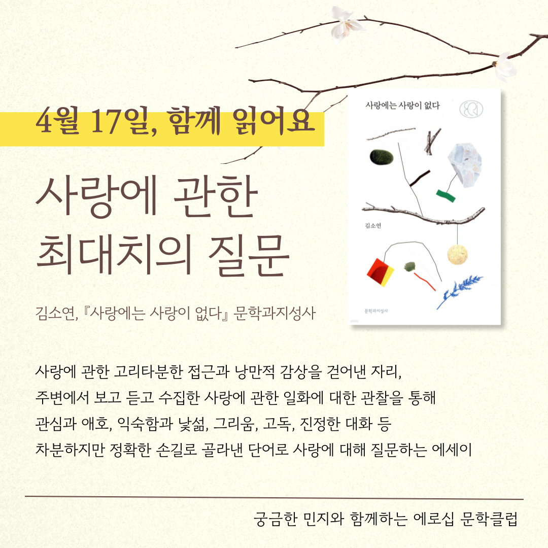 4월 17일(목), 『사랑에는 사랑이 없다』 함께 읽어요