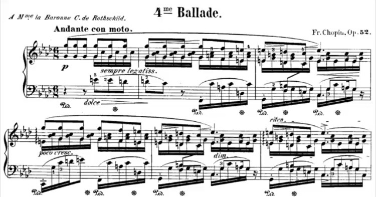 쇼팽 발라드 4번 169~171 마디의 왼손 구간에는 반음 내려간 레(d flat)를 시작으로 장음계 선율이 곱게 펼쳐진다. 발라드 4번을 연습하면서 가장 많이 들은 연주 버전은 조성진이었다. 그는 이 구간을 레가토로 연주하되 매끄럽다기보다는 부드럽게 뜯는 하프처럼 연주했다. 저음에서 고음으로 올라가면서 소리의 알맹이는 더 여물되 무게는 부력을 받는 듯 가벼워진다. 잘 익은 노른자를 말캉한 흰자가 감싼 모양이다.