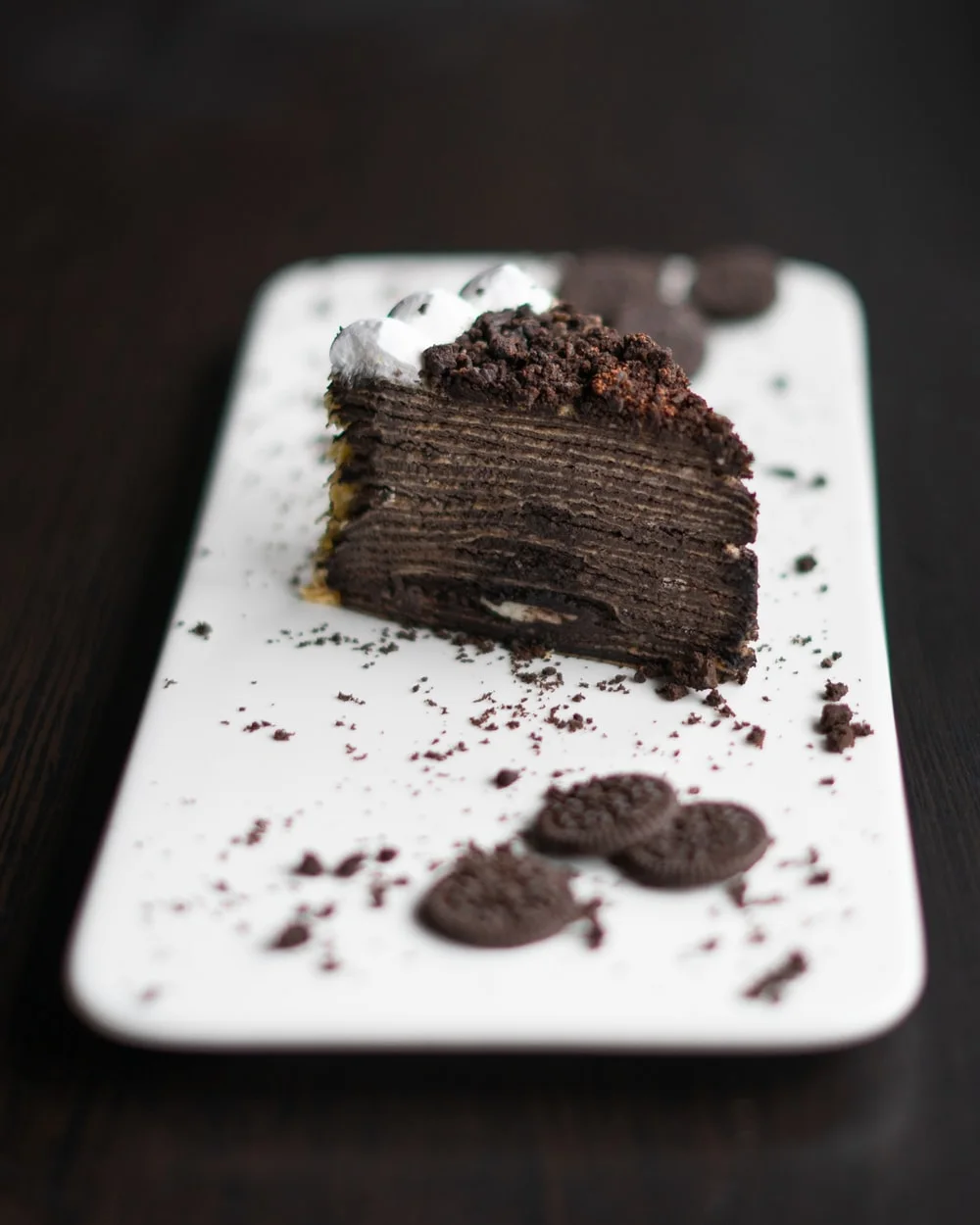 이제 나는 크레이프를 그처럼 말아먹지 않는다. 지층처럼 층층이 쌓인 단면을 느끼려면 세로로 먹는 것이 제격이다. 시트를 하나씩 걷어내면, 롤처럼 다시 층이 형성되지만, 시트 사이를 균일하게 채우던 크림은 뭉개지고 만다. 내 기준 ‘크레이프 케이크를 제대로 맛보는 법’은 수직으로 썰어먹기다.