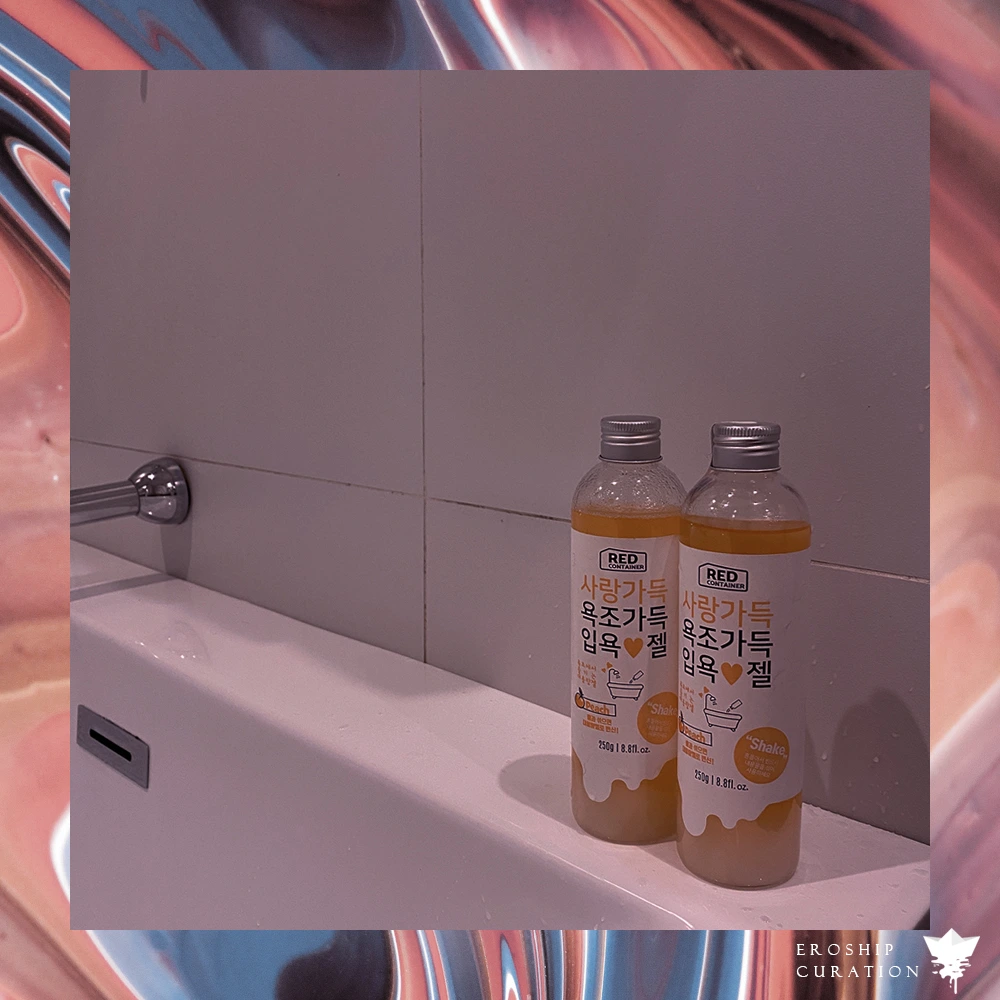 이야기가 돌아왔는데요. 속옷이나 향수도 좋지만, 직접적인 방법을 권하고 싶습니다. 촉각이죠. 문명 세계란 독특해서, 상상을 실재화한 제품을 현실에서 만날 때가 있습니다. 가정용 욕조 용량을 1300x600x600으로 가정하면, 약 500리터의 물을 받을 수 있는데요. 욕조를 40%만 채우고 사진 속 젤 두 통(한 통이 250ml)을 푸니 원하는 점성이 나왔습니다. 상상 속 ‘젤 풀장’이 구현된 것이죠.