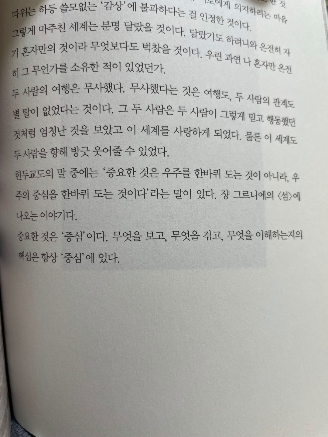 어쩌면 이런 순간의 강렬한 빛이 나머지 모든 빛을 가려버리기 때문에, 어쩌면 이런 순간에는 모든 것이 마법처럼 자유롭게 하늘을 둥둥 떠다니는 것처럼 느껴지기 때문에 나머지 보통의 삶이 너무 힘들고 구차하고 실패한 듯이 보일 수도 있다.