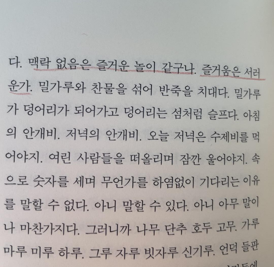 별사탕처럼 일상적인 하루가 나올 때 등장하는 사람들과 풍경, 날카롭던 기분까지 묘사하는 그 부분들을 아껴서 두 번씩 읽곤 했다.