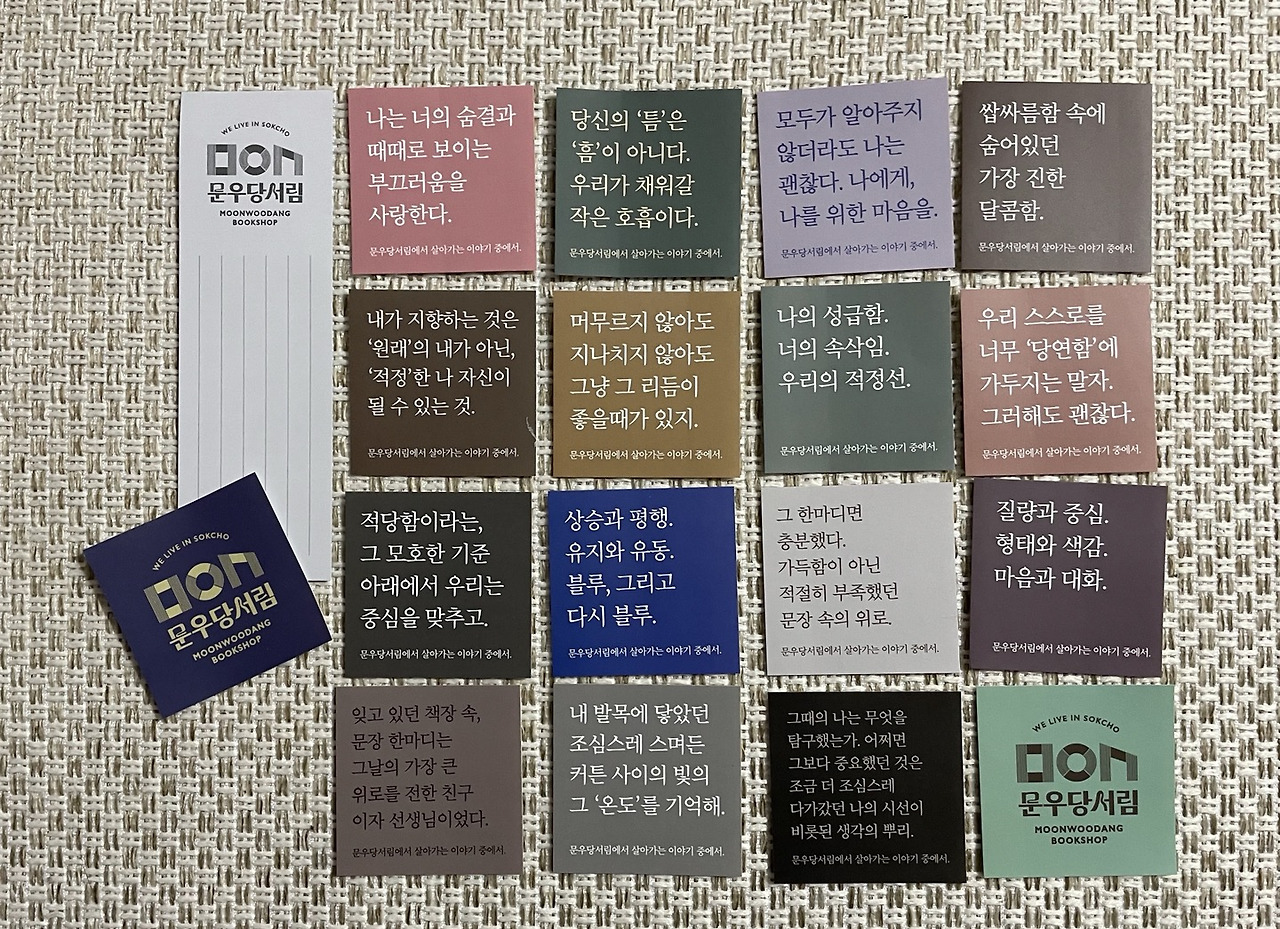 단어를 쭉 적어 스탠드 옆, 잘 보이는 곳에 붙여두던 말랑한 시절이 몇 년 전의 나에게도 있었다는 사실을 깨닫는다. 이제는 그런 감성이 닳아서 바로 보고 마는 사진이나 가득 붙여놓는다.