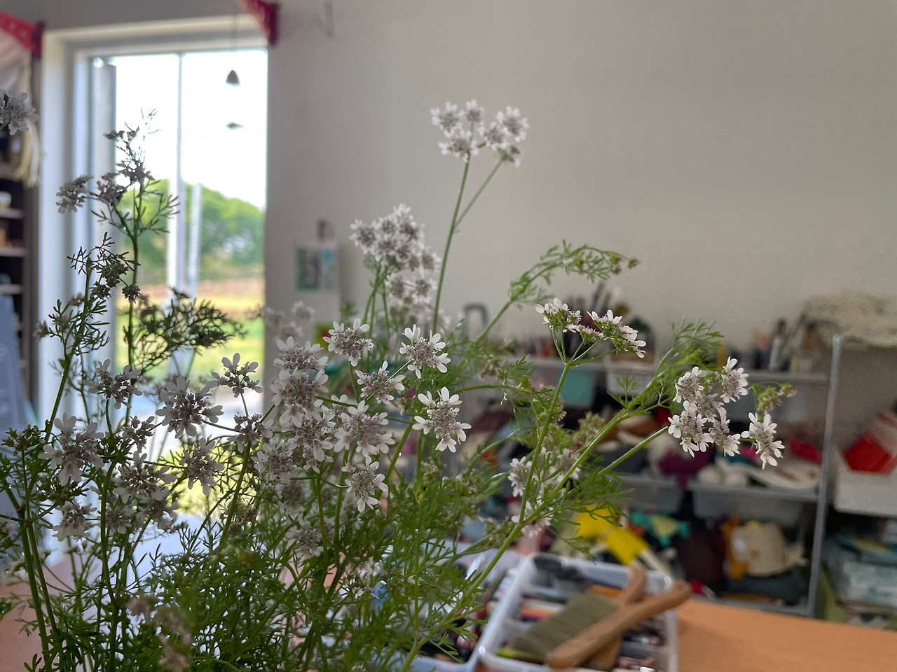 더워서 선풍기를 꺼냈다. 읽은 책들을 정리하다가 고수 꽃을 책상에 꽂아두고 쓰는 일기. 새로운 시리즈의 그림들을 그리기 시작했다. 내가 나에게 칭찬 많이 해줘야지. 운동을 배우며, 칭찬의 힘을 느낀다. 그림 그리러 오는 어른들도 하나같이 (이제는 믿지 않을 정도로) 칭찬 메들리 속에서 행복하다 했는데, 사실은 그걸 내가 무척 바라왔기 때문일지도 모른다. 셀프 칭찬을 게을리하지 말 것! 그리고 조금 구려도 그냥 다음 그림으로 넘어가자. 하나의 아사나에 집착하지 않는 것처럼, 그저 다음 그림을 향해 그려나가기.