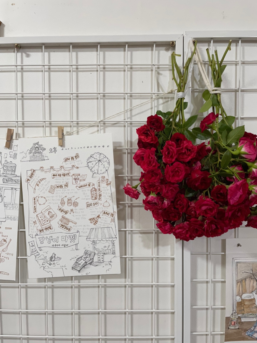 날씨 때문에 행복감이 가득한 요 며칠! 어제는 아까운 계절을 만끽하려 야외 수업을 했다. 책상을 밖에 꺼내 두고 보이는 풍경들을 그리기. 긴치마가 바람에 날리고 종이들을 눌러놔야 했지만 좋았다. 그림을 그리러 온 친구들도 까마귀처럼 소리 지르거나 수줍게 기뻐하였다.