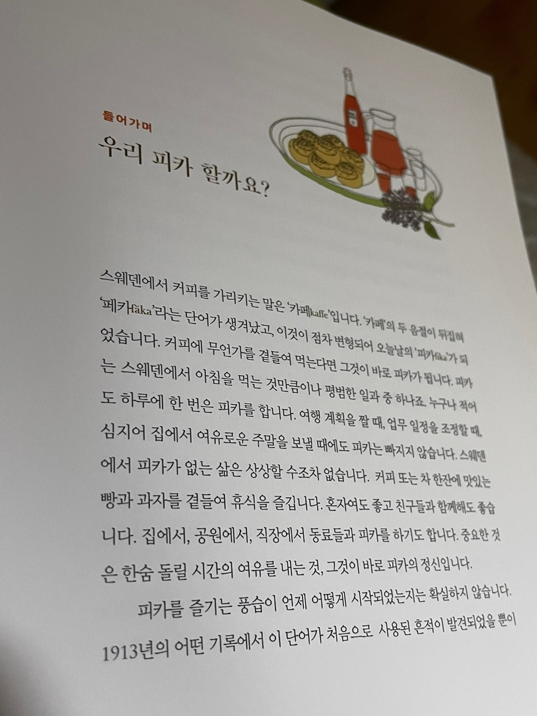 스웨덴 요리법과 문화가 깃든 가벼운 레시피책으로 그림이 너무 예뻐서 골랐다. 글도 그림도 산뜻해! 좋아하는 일러스트 작가 5dock의 느낌이 나서 더더욱 좋았다. 그림들을 스티커로 가지고 싶다.