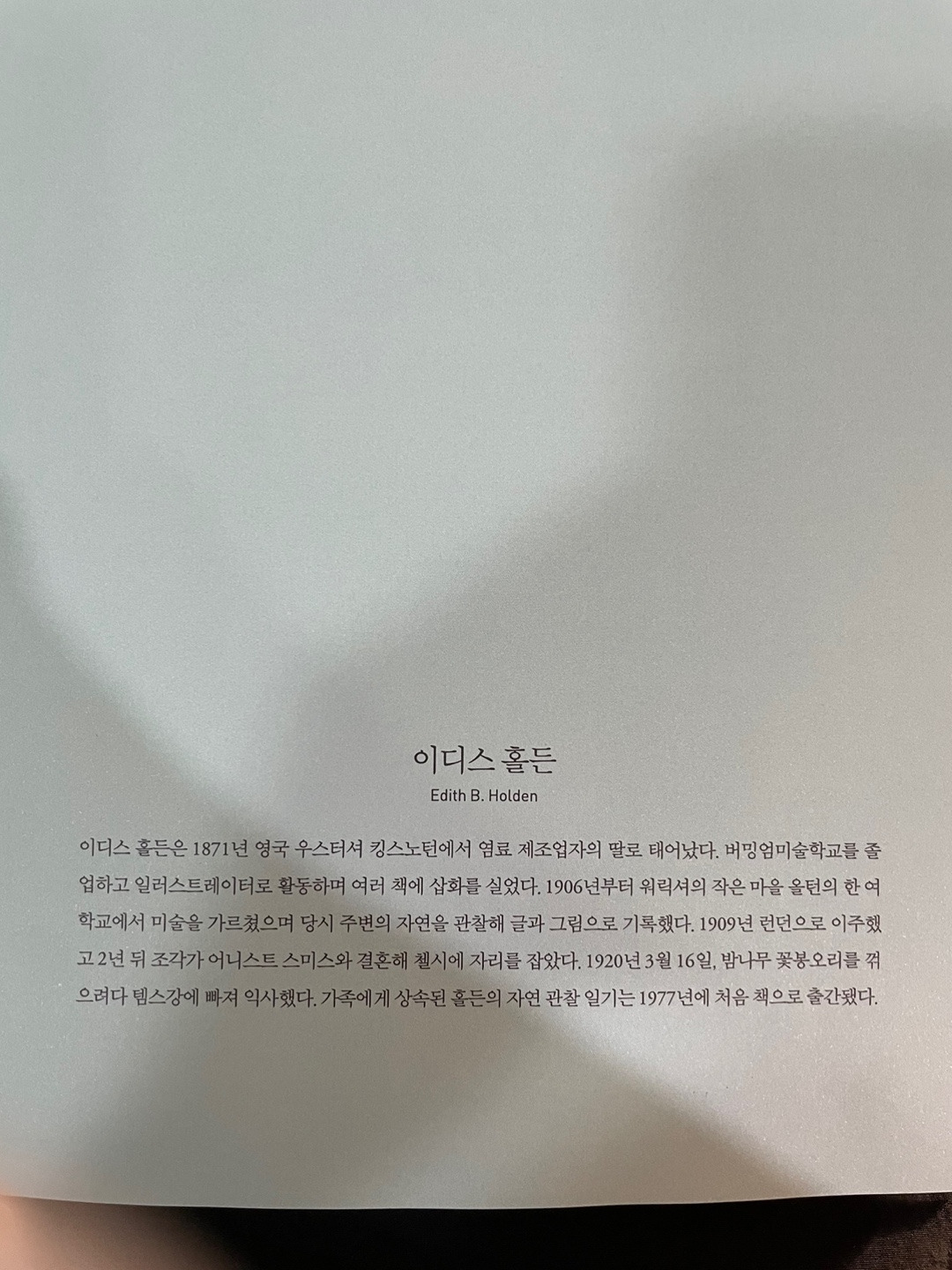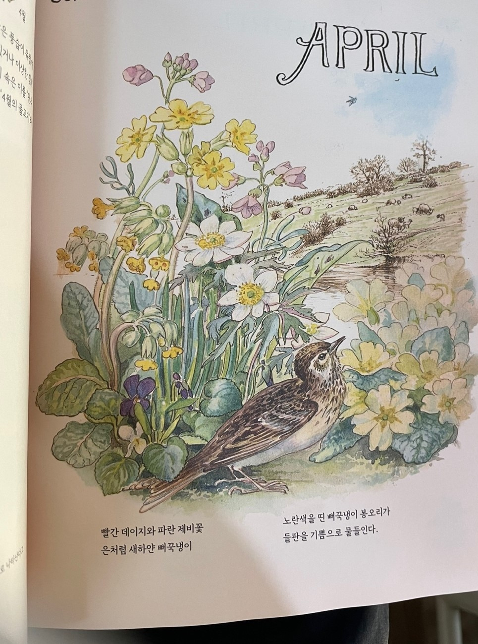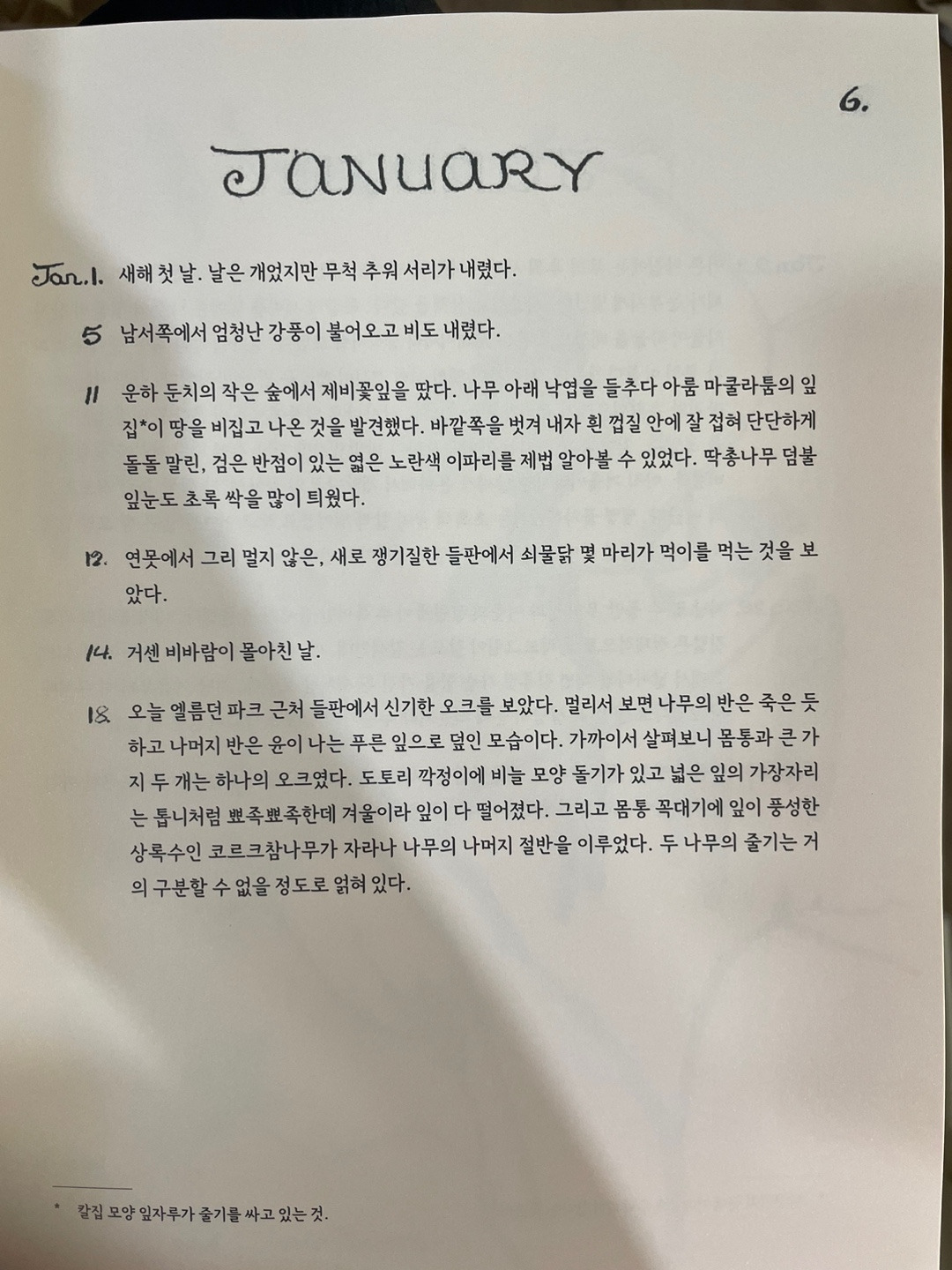 정말... 침 줄줄 흘리며 봤다. 그냥 글씨도 다 취향난사. 무조건 좋아하는 종류의 책. 자연 관찰 일기로 매우 예전인데도 유효한 내용들이 많다. 그림 중 흰 꽃 표현이 특히 아름답다. 새와 나무 식물, 그해의 날씨, 바람이나 햇살 온도 등의 내용이 담긴 이런 기록을 해보고싶다는 의욕이 생긴다.
