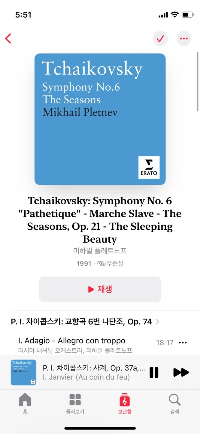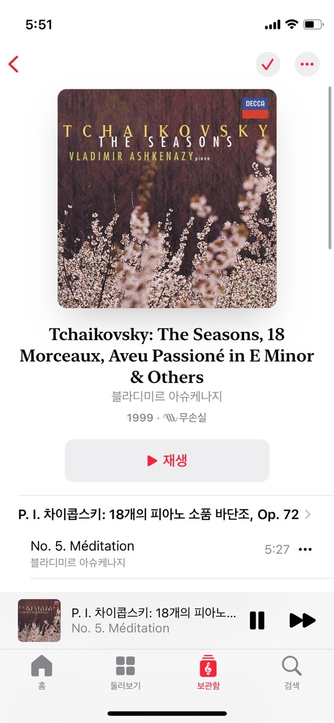 한국과 인연도 있고, 루간스키와 마찬가지로 둘 다 차이코프스키 콩쿠르 출신이다(아슈케나지와 곧 나올 플레트뇨프는 1등, 루간스키는 1등 없는 2등. 그러나 무엇이 중요하리오). 이 글을 쓰려고 검색하다 보니 이 앨범이 차이코프스키 사계의 명반 중 하나로 꼽힌다는 점을 알게 되었다. 역시 좋은 건 다 통해! 아슈케나지 버전의 사계는 다소 건조하거나 심심하게 느껴질 수 있으나 그만큼 섬세하기에 와닿는다.