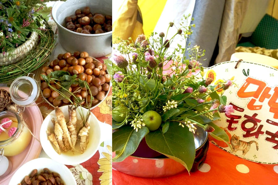 옆구리에 채반을 끼고 나물 이름을 하나하나 설명해 주겠지. 만두머리도 필수야.”