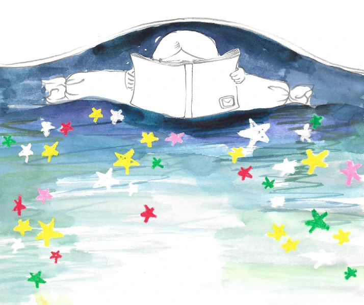 소파에 앉아서 휙휙 종이를 넘길 때면, 잠들기 전 책을 읽던 어린 내가 자연스럽게 스미어 나와. 큰 베게에 기대어 라이언 킹이 새겨진 스탠드를 켜고, 주황색 불 아래서 머리맡에 쌓여있는 책 중에 한권을 골라서 읽는 거지. 읽다가 재미없으면 다른 책을 봐. 아무도 뭐라고 하지 않거든. 그렇게 갈 수 없는 우주로, 안개가 자욱한 마법세계로, 전화선을 타고 다른 사람의 마음속으로 여행하는, 보라 빛 마음 그대로 잠이 드는 거야.