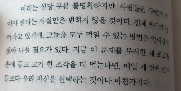 지구를 나눠 쓰는 인류들은 풍요로워졌지만 여전히 곪는 구석이 있다. 왜일까? 에 대한 접근을 좀 더 다각도에서 과학자의 이성적인 시선으로 풀어낸 책이다. 인구, 농업, 축산업, 어업을 넘어 설탕과 자동차에 이르기까지 얼마나 풍요로워졌고, 얼마나 잔인하게 파괴해 왔는지도 담담한 어조로 말한다. 코 끝이 매워지는 슬픔도 있다.