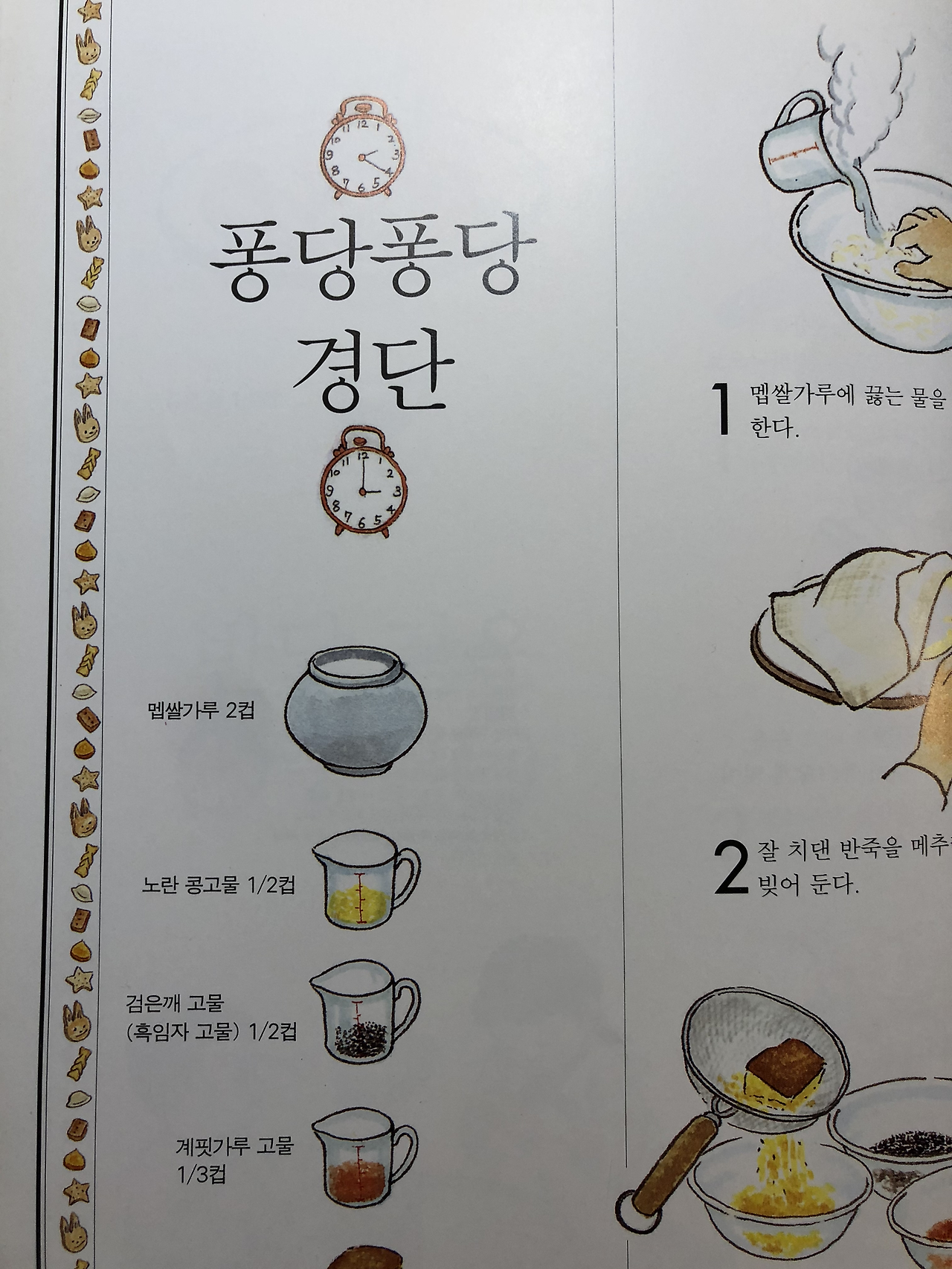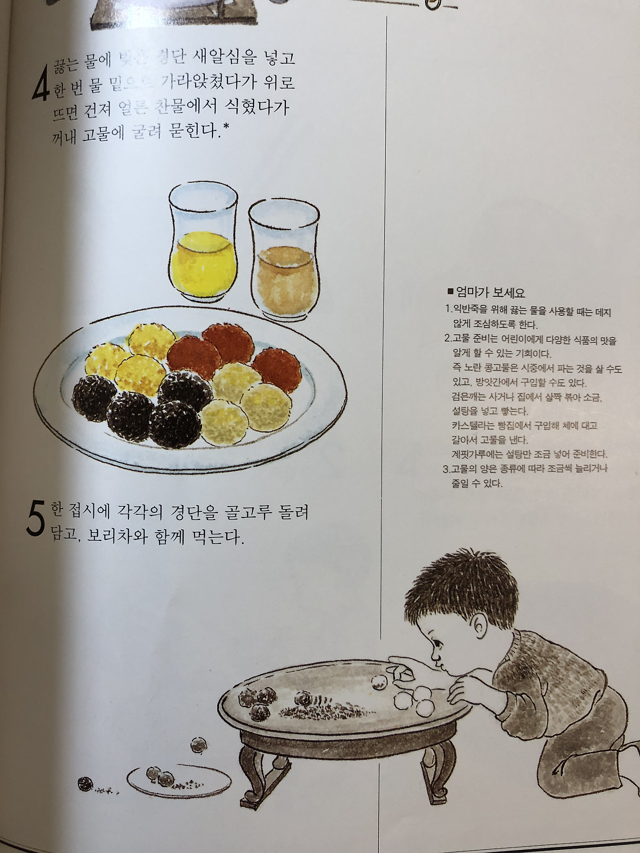 어릴 때 엄마가 나를 위해 책을 베껴 파일에 넣어주던 기억이 난다. 연필로 그린 섬세한 그림과 엄마 글씨로 써진 책은 비닐이 닳을까 아껴봤다. 그 책을 만들 던 엄마의 마음이 여기서도 느껴진다. 요리 이름을 지어준 언어학자인 아빠도 함께. 미지의 세계였던 요리가 어린이의 마음을 사로잡아 요리사를 꿈꾸며 각종 요리 책과 요리 채널을 섭렵하던 때도 떠올리게 한다. 책을 다 읽고 올 겨울엔 수정과를 만들기로 했다.