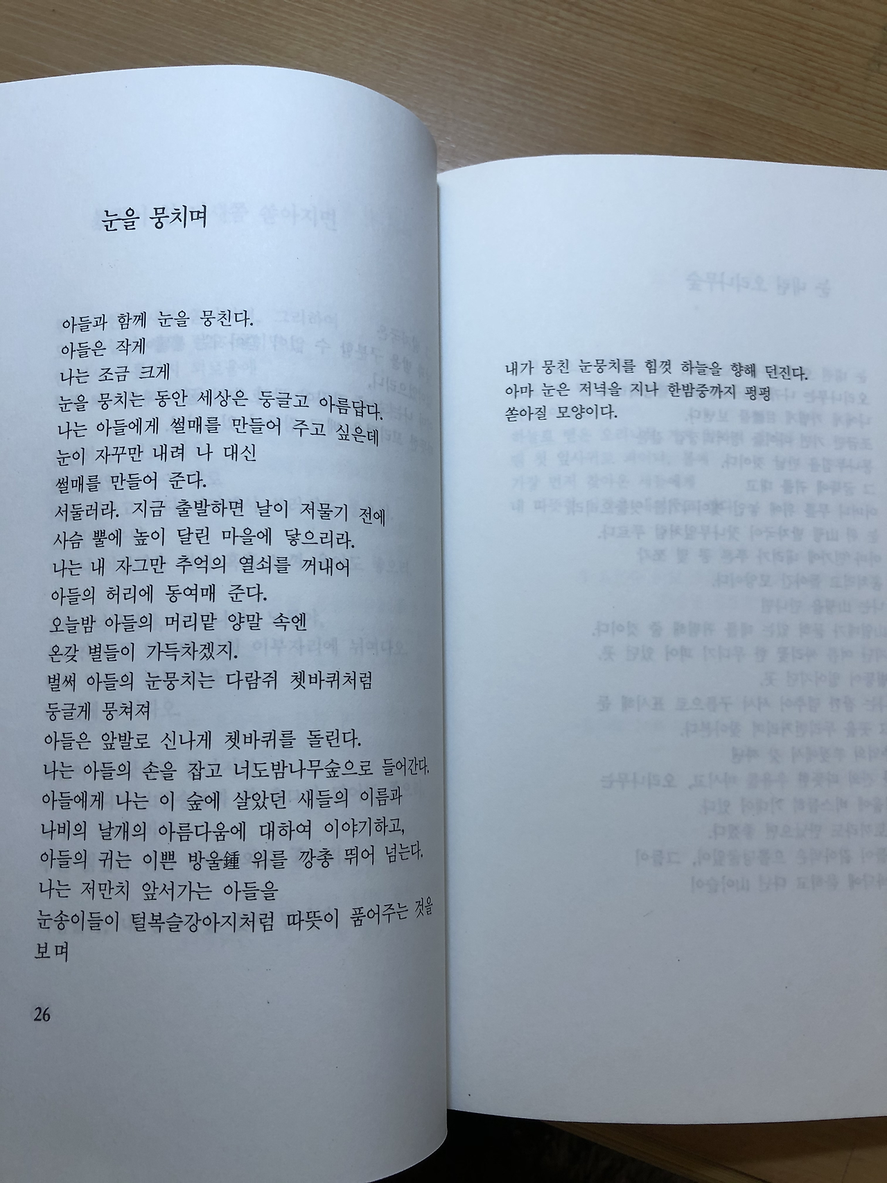 '눈을 뭉치며'와 '꽃에게'가 좋았다. 조선시대 동화 속 머무른 한 장면 같다. (그만큼 맑기도 하고, 처녀 누이 아낙 등이 많이 나온다는 뜻). 한자 공부하고 싶다는 마음이 몇 년 만에 들었다.