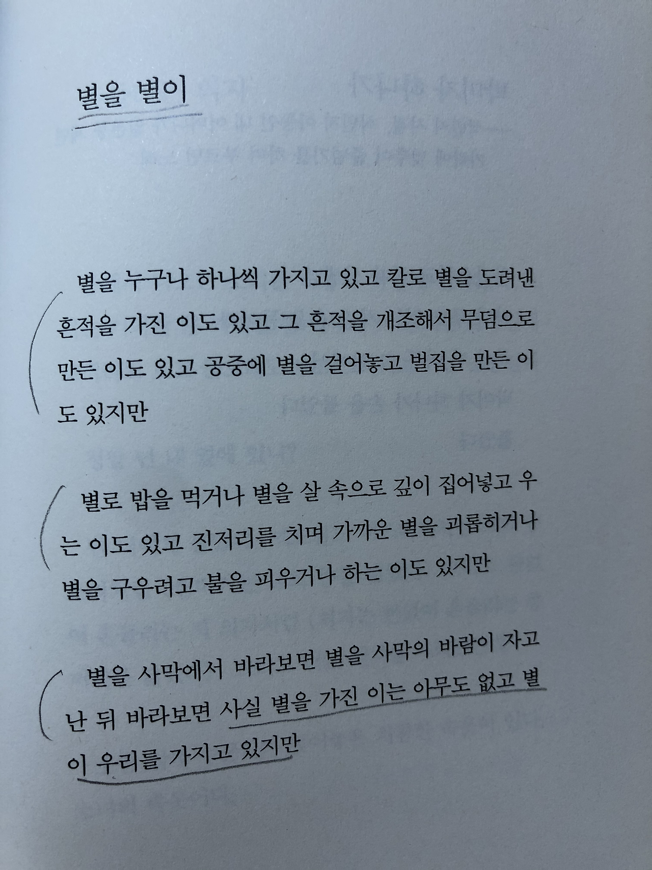 관광지가 고향인 작가의 여행기라니. 여행지에서 썼던 평소의 일기와 시와 사진을 합쳐서 낸 책이다. 시간의 조각을 뭉텅 떼어 고무 찰흙 붙이 듯 연결해뒀다. 순서를 꾸리는 게 까다로웠겠다. 이 시기에 보았기에 좋았다. 달에서 나올법한 책이지만, <끌림>보단 허수경 시인의 <가기 전에 쓰는 글들>에 가깝겠다. 무늬의 뒷모습, 기념품, 마지막 공기 부분이 좋았다. 내가 좋아하는 김소연의 첨예하며 둥그스룸한 뉘앙스가 가득 있다.