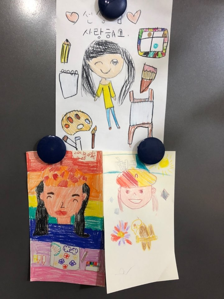 자석으로 애기들이 그려준 그림을 붙어두었는데 없어졌다며 어디 갔냐고 묻는 친구들에게 바람에 날아갔다고 전했다. 친구들 왈, ‘바람도 제 그림이 마음에 들었나 봐요!’