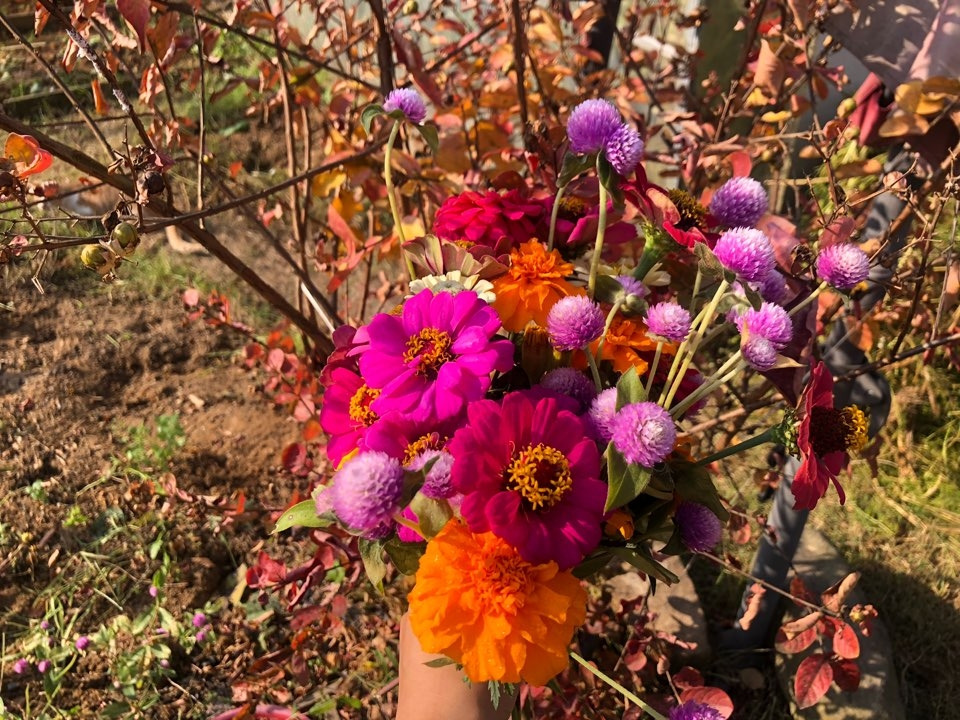추운 듯하다가도 움직이면 따사롭다. 잘 자고 일어나 밥을 먹고 어제 그리던 그림을 고민했다. 백일홍도 몇 송이 데려다 놓고, 아빠가 주워온 모과와 함께 뒀다.