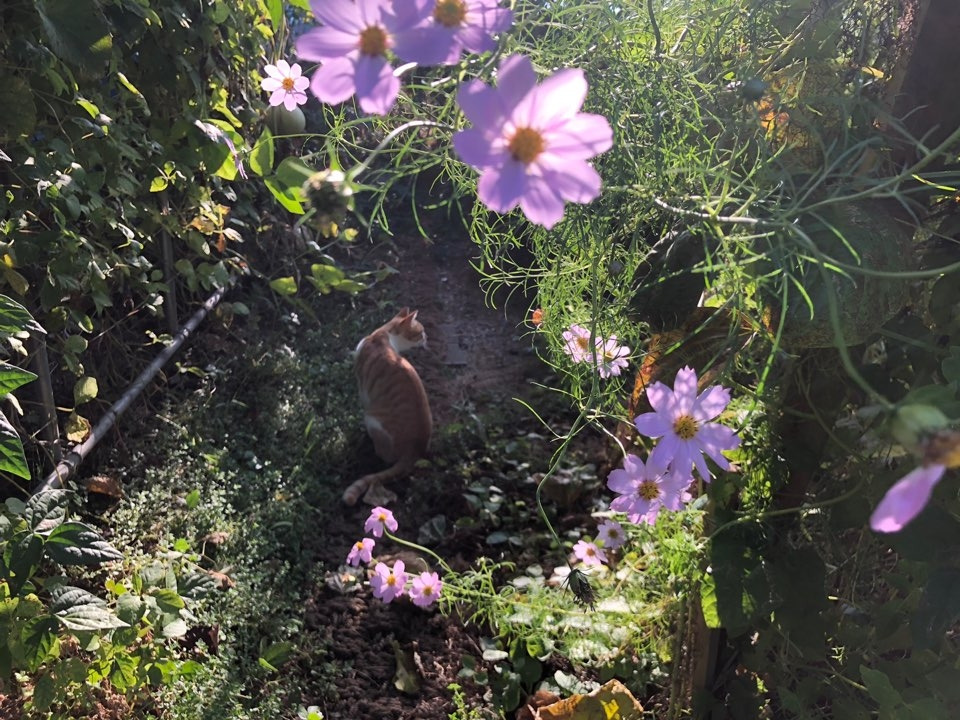 나도 여기의 풍경을 좀 묘사해볼까. 오늘의 풍경. 곶감을 널어놨을 때 몰려왔던 갈색 나비들이 올해도 어김없이 찾아왔다. 덕분에 버터가 풀 사이의 공중으로 1미터씩 뛰어오른다.
