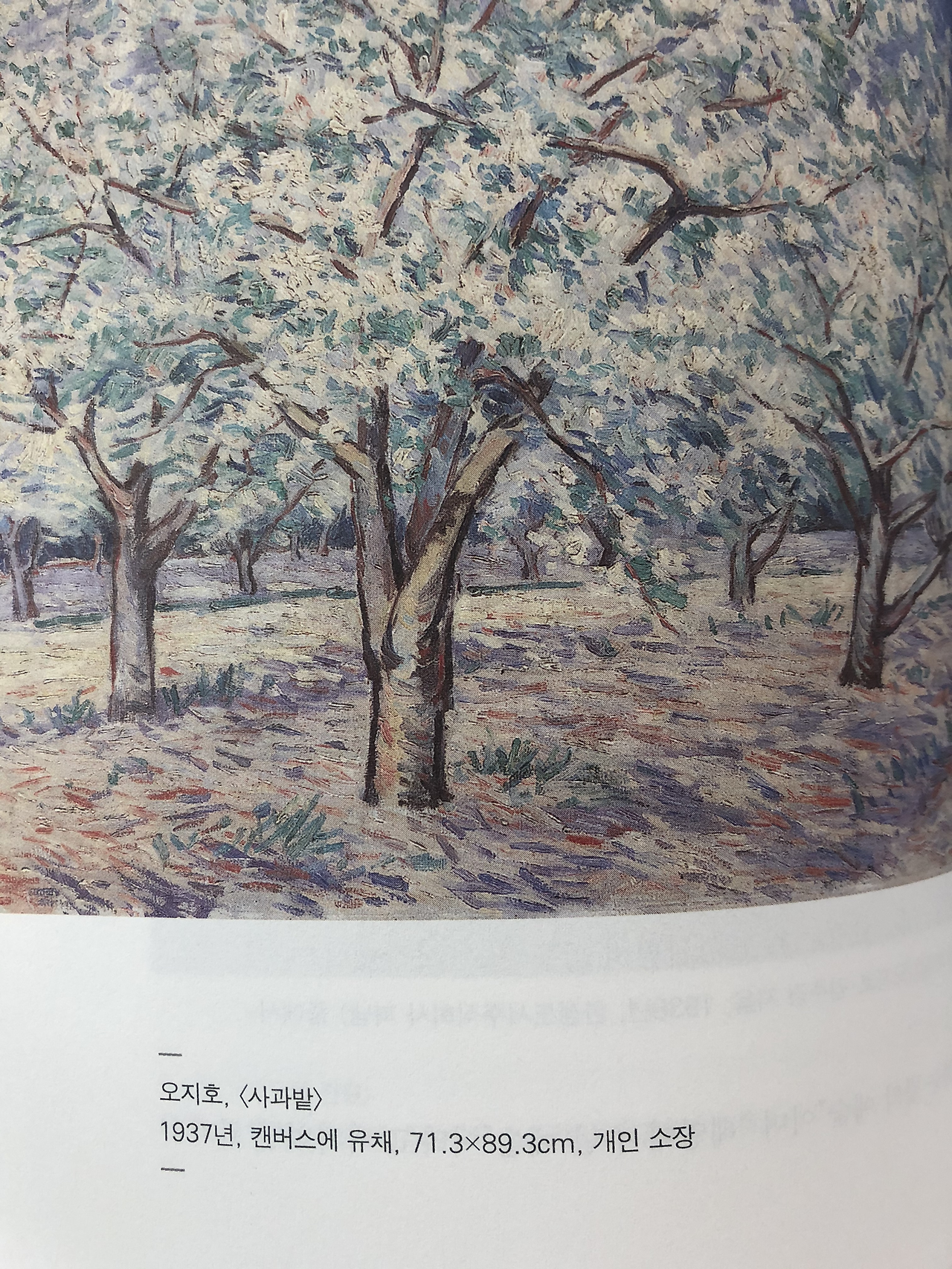교과서로 배운 한국 근대 소설에 어쩐지 거리감이 느껴지는 것처럼, 서양 미술사만 줄줄 외워 시험을 치던 나에게 한국 근대 미술은 낯선 영역이었다. 어렴풋하게 알던 작가들을 압축적으로 훑어볼 수 있어 충분한 시간이었다. 오지호 작가의 '사과밭'은 우리 집과 바로 붙어 있는 사과 과수원을 떠올리게했다. 곧 있으면 사과꽃이 피고, 그럼 또 기쁨의 하얀 길을 통과하는 앤의 이 보고싶을 텐데, 그때 엮어 이 그림도 함께 생각해야겠다.
