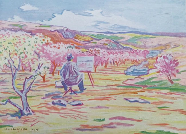 화집의 작가노트에 따르면 오지호의 대표작품인 <사과밭(林擒園)>(1937)은 꽃망울이 맺히기 시작한 5월 8일 토요일부터 작가가 과수원을 방문하여 아침부터 저녁까지 그림을 그리기 시작해서 꽃이 지는 3일 동안 제작되었음을 알 수 있다. 작가는 복숭아꽃과 사과꽃의 섬세한 차이와 자칫 놓치기 쉬운 봄날의 정취를 섬세하게 기록하였으며, 이러한 오지호를 관찰한 김주경은 <오지호(吳之湖)>(1937)라는 작품을 남기면서, 계절의 변화에 상대적으로 무심한 자신에게 친구는 일종의 ‘경종’을 울리는 존재이며, 봄볕에 그을은 친구의 얼굴과 봄 동안 온종일 세심한 노력으로 제작한 그의 꽃 그림은 동족(同族)이라고 언급하고 있다.