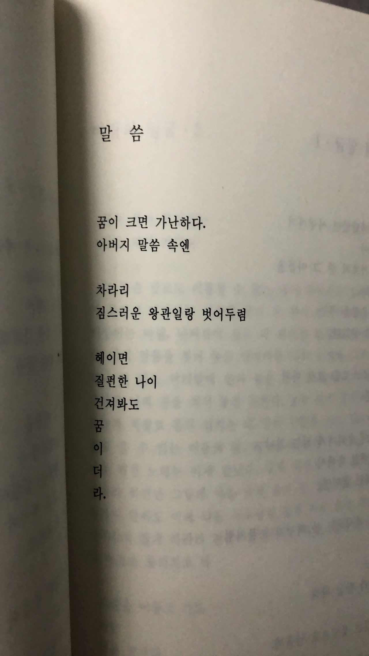 마음이 정화되는 글. 사 년 전쯤 봤을 땐 이렇게 좋지 않았다. 당연히 글씨는 그대로 있었을 테니, 그 사이에 내가 변한 거겠지.