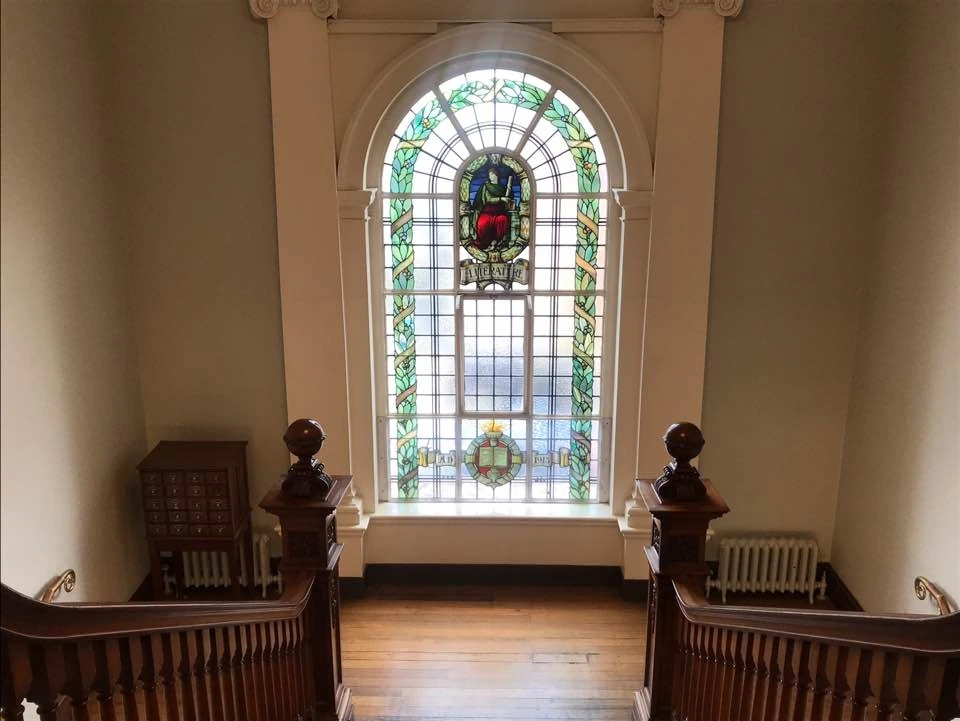 2층으로 올라가는 계단 앞에는 심플하지만 아름다운 스테인리스 창문이 있다. 아일랜드 건물 중에는 이런 고전적인 아름다움을 그대로 간직한 곳이 많다. 게이 시어터 페스티벌 때 Teacher's Club 2층에 있는 펍도 되게 예뻤다.