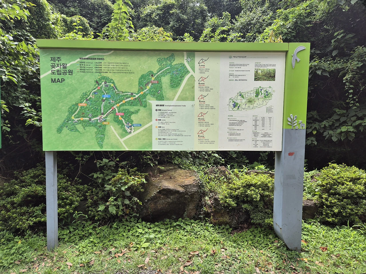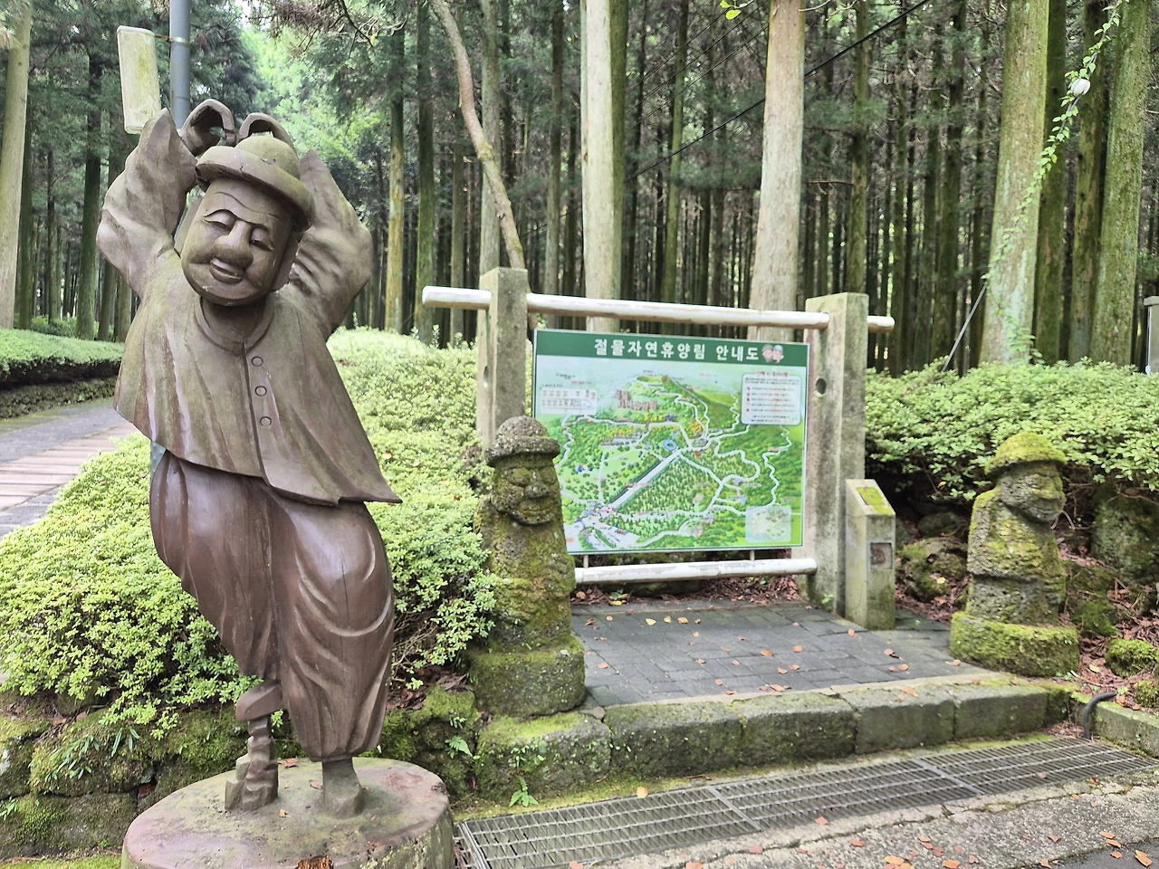 아침에 들른 '절물자연휴양림'은 아름다운 자연경관과 쾌적한 환경으로 유명하다. 이곳은 울창한 숲과 맑은 계곡이 어우러진 공간으로, 삼나무 숲이 인상적이다. 숲길은 걷기 좋은 산책로로, 상쾌한 공기를 마시고 자연을 즐길 수 있다. 가족 단위 방문객뿐만 아니라 등산이나 트레킹을 즐기는 사람들에게도 인기가 많다.