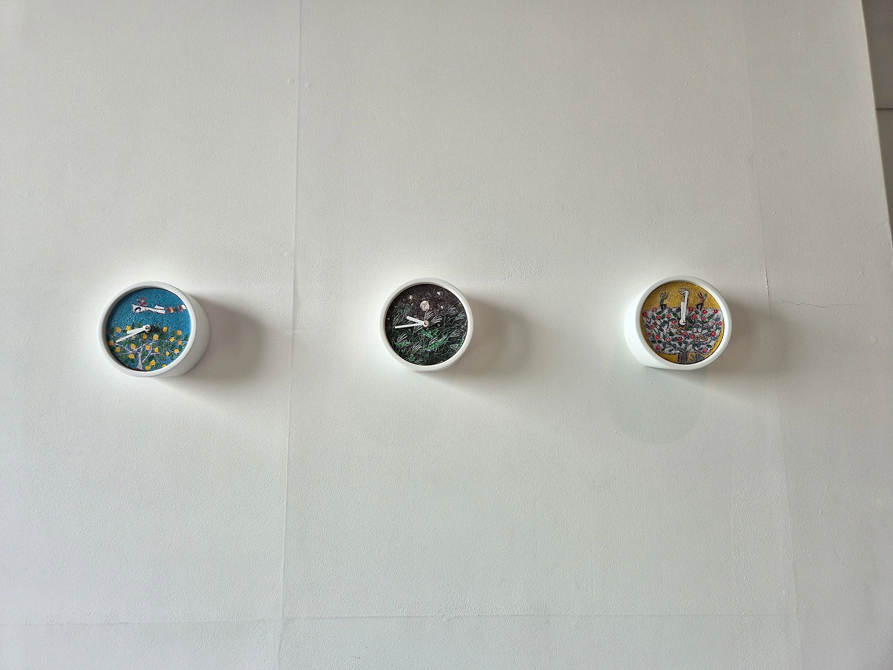 특히 내 사무실에 걸려 있는 꽃 그림 유화의 원작도 만났다. 수많은 시계로 표현된 자연의 그림들과, 화가가 닭띠여서 그런지 유난히 많아 보이는 수탉 작품들도 인상적이었다.