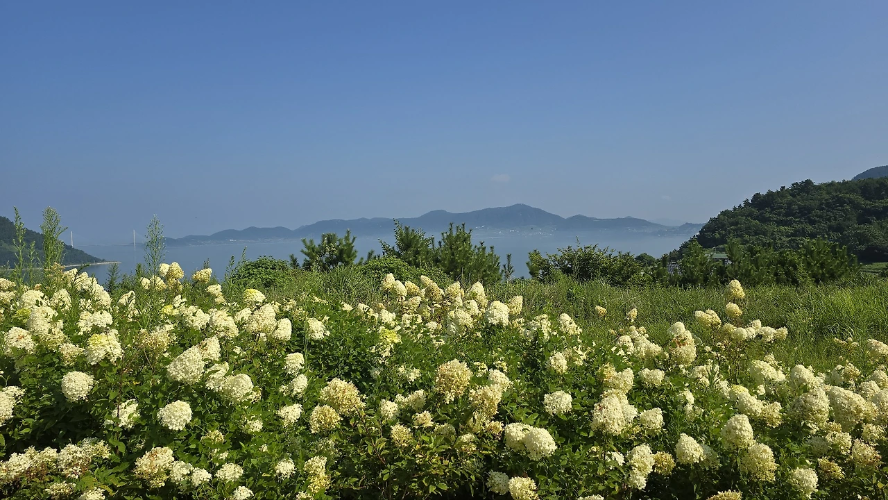 해안도로로 나서다 바다를 조망할만한 스폿이 나오면 잠시 차를 멈추고 멍 때리기를 하였다. 종달리 해안도로는 수국길이었는데, 6월에 이 길을 지났으면 대단했을 것이다. 한여름 용광로 같은 햇볕을 견뎌내지 못한 빛바랜 누런 꽃잎들이 못내 안타까웠다.