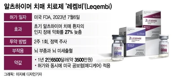 레켐비는 알츠하이머병의 주요 원인으로 알려진 아밀로이드 베타 단백질을 제거하여 질병 진행을 늦추는 약물이다. 임상 연구 결과, 18개월 동안 레켐비를 투여한 환자군에서 위약 투여군 대비 뇌 기능 저하 속도가 27% 지연되는 것으로 나타났다.