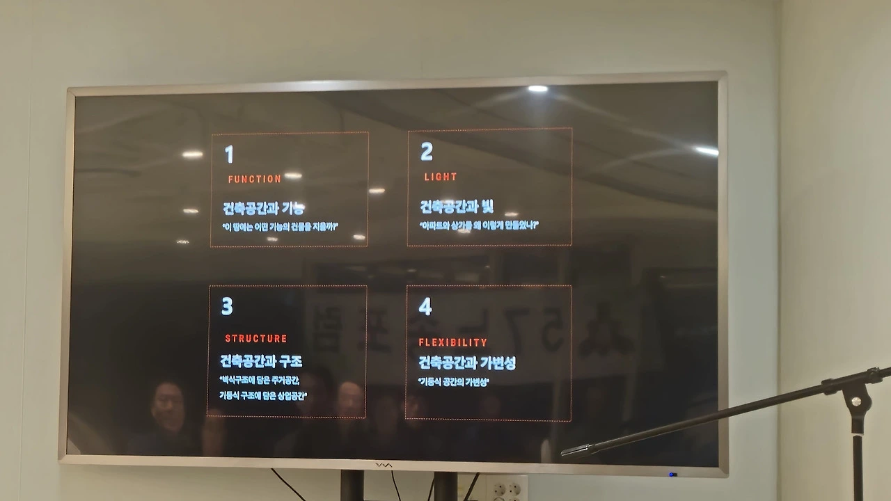 "건축의 본질은 공간입니다." 그의 첫마디가 깊은 울림을 남겼다. 형태에 집착하기보다는 공간의 본질을 이해하고, 이를 통해 살아있는 건축을 만들어가는 것이 중요하다고 강조했다. 공간은 빛, 구조, 기능, 융통성이라는 네 가지 요소에 의해 결정된다고 했다.