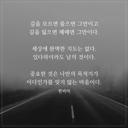 중요한 것은 최종 목적지가 어디인지 잊지 않는 마음이다. 방향만 잃지 않는다면, 길은 언제든 만들어갈 수 있다.