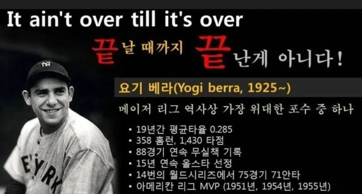 요기 베라 왈, 끝날 때까지 끝난 게 아니다!
