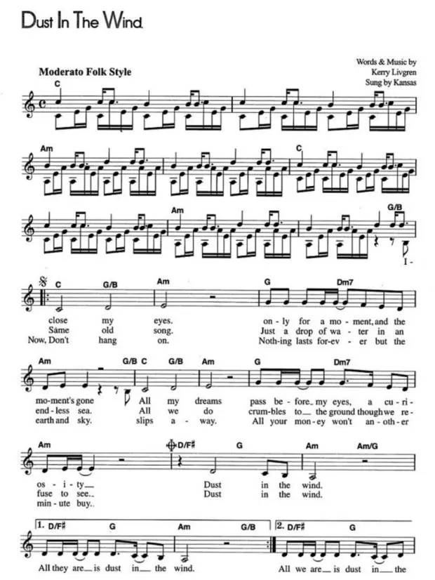 Kansas의 명곡 "Dust in the Wind"는 삶의 덧없음과 인간 존재의 유한함을 노래한 곡으로, 많은 이들의 가슴을 울리는 철학적인 메시지를 담고 있다.