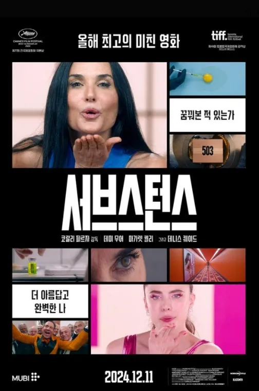<The Substance>는 결국 우리 사회가 얼마나 집단적으로 ‘젊음과 아름다움’이라는 신화를 소비하고 있는지를 잔인할 정도로 정확하게 비추는 거울이다.