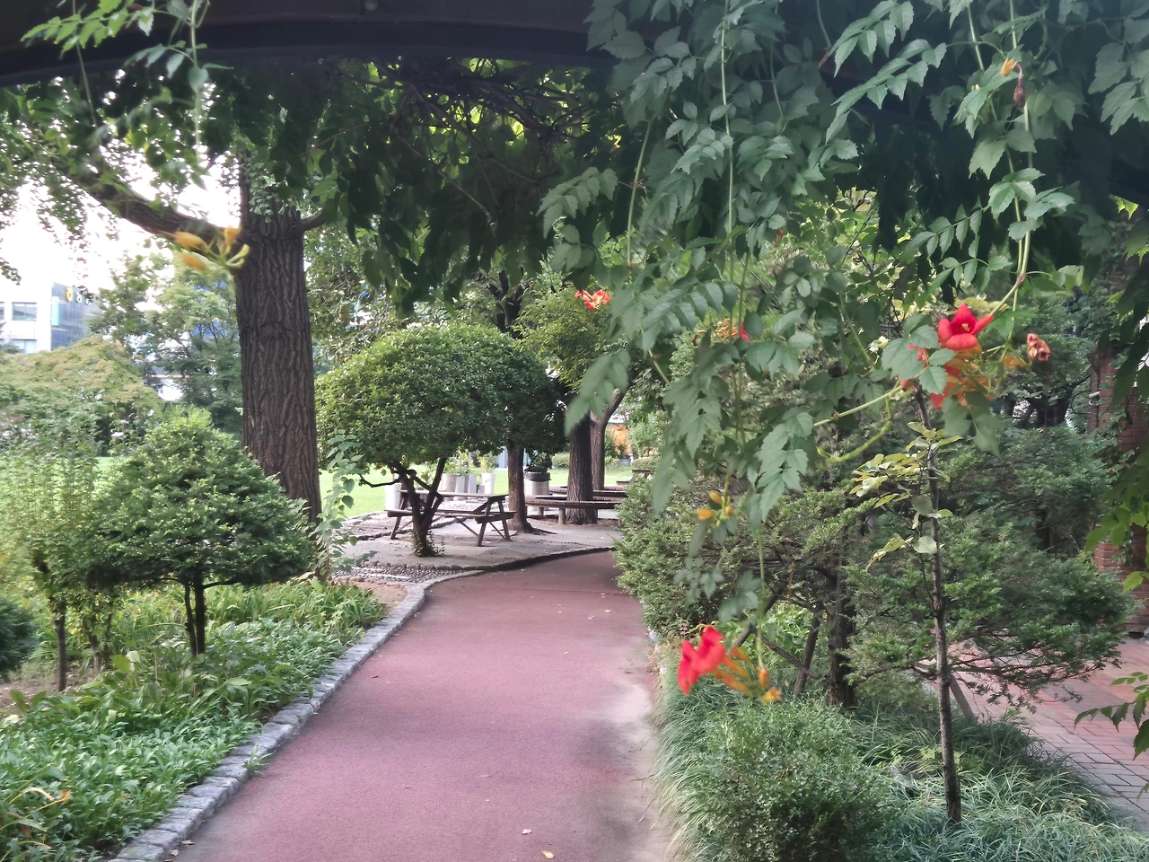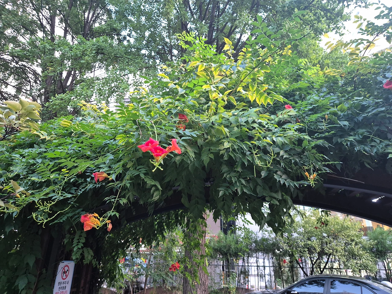 이번에 아내와 찾은 국립중앙의료원 앞은 많이 달라져 있었다. 부대찌개 집 자리엔 낙지집이 들어서 있었다. 병원 담벼락에는 담쟁이덩굴이 세월의 낙서처럼 어지럽게 얽혀있었다. 산 낙지볶음과 두루치기를 함께 먹으며 옛 추억을 회상했다. 창밖으로 보이는 능소화는, 마치 세월이 흘러도 변하지 않는 어떤 기억의 상징처럼 보였다.