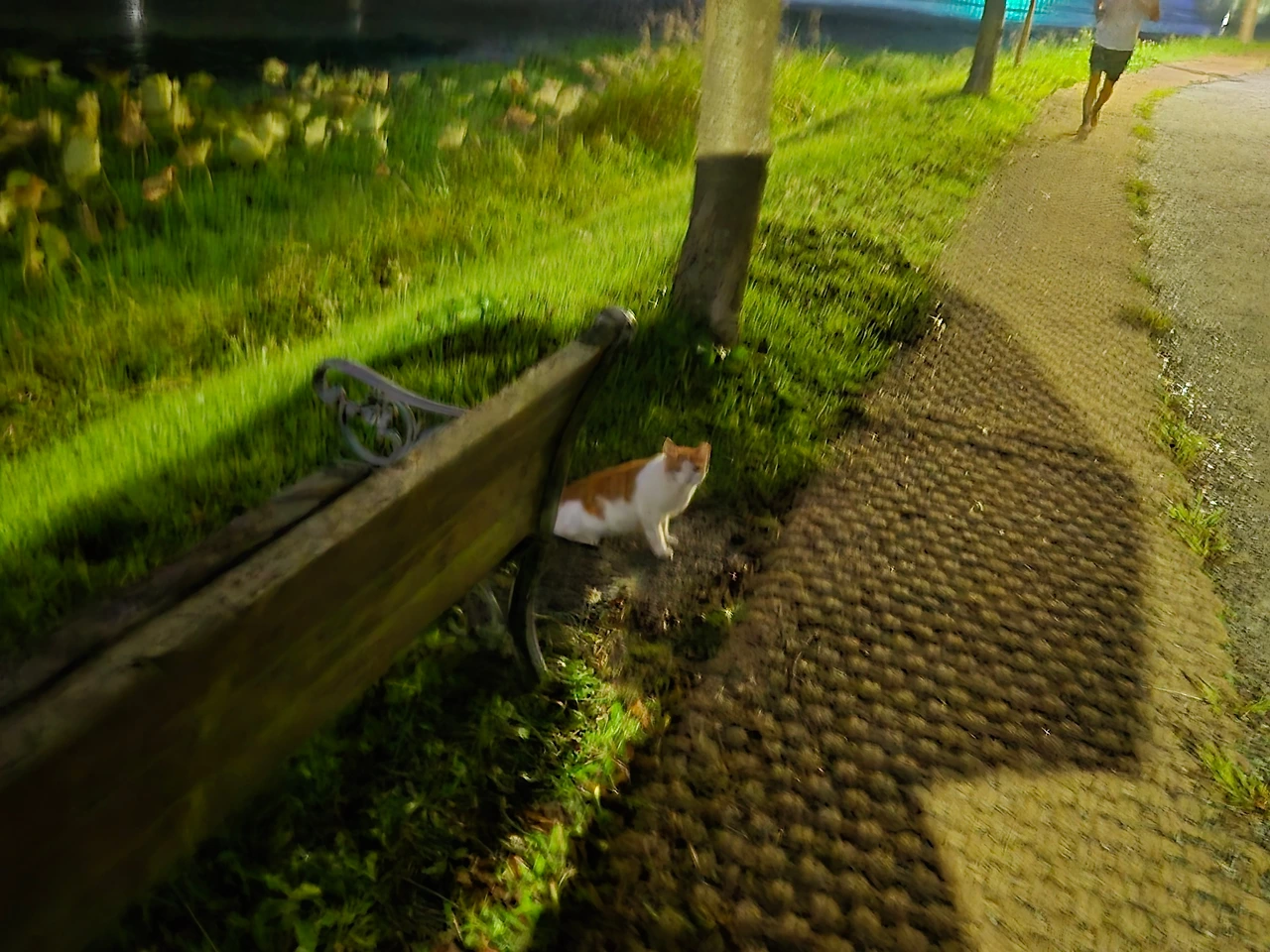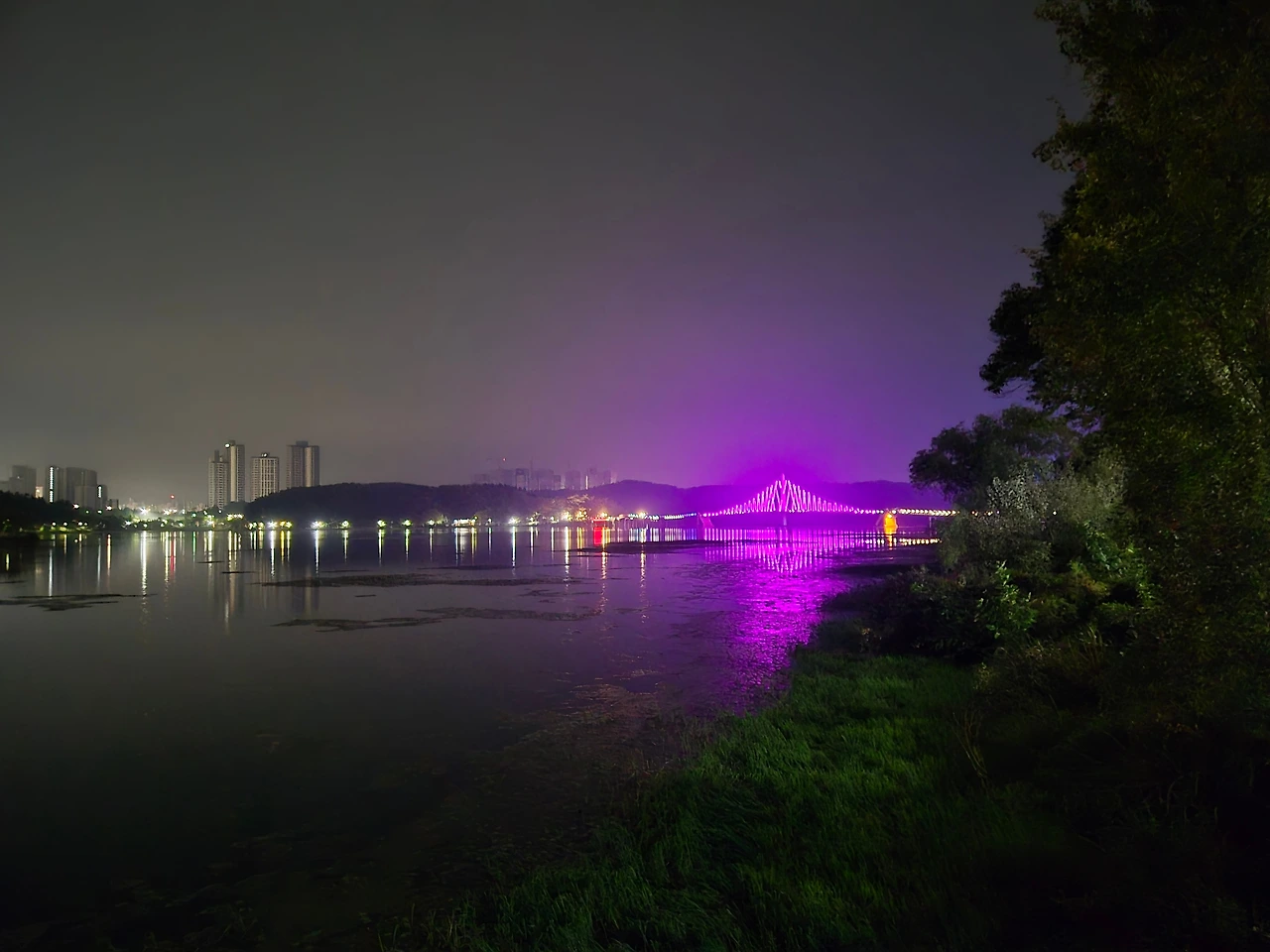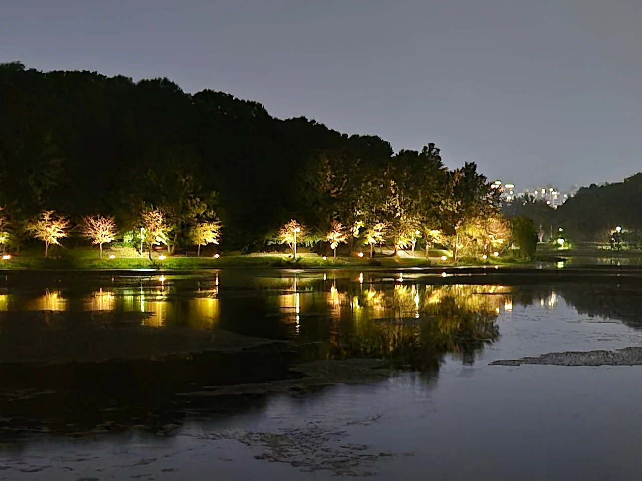 이어서 찾은 은파호수공원은 비가 내리는 가운데도 고즈넉했다. 호수 위 다리를 따라 번지는 조명, 둘레길에서 만난 길냥이 두 마리와의 눈 맞춤은 나그네의 외로움을 달래주었다. 숙소로 돌아와 군산 지역 맥주 한잔으로 하루를 마무리하며, 비 내리는 숲을 바라보았다.