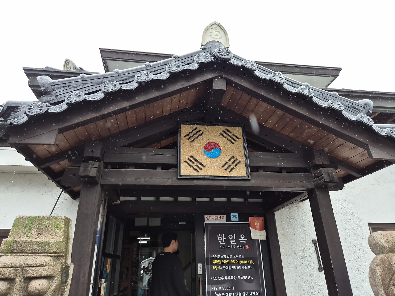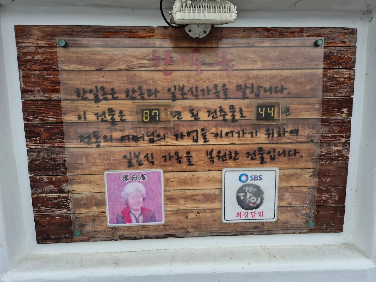 점심은 구시가지 ‘한일옥’에서 한우뭇국을 맛보았다. 국물은 담백했고, 일본식 적산 가옥에 태극기가 걸린 입구가 시선을 끌었다.