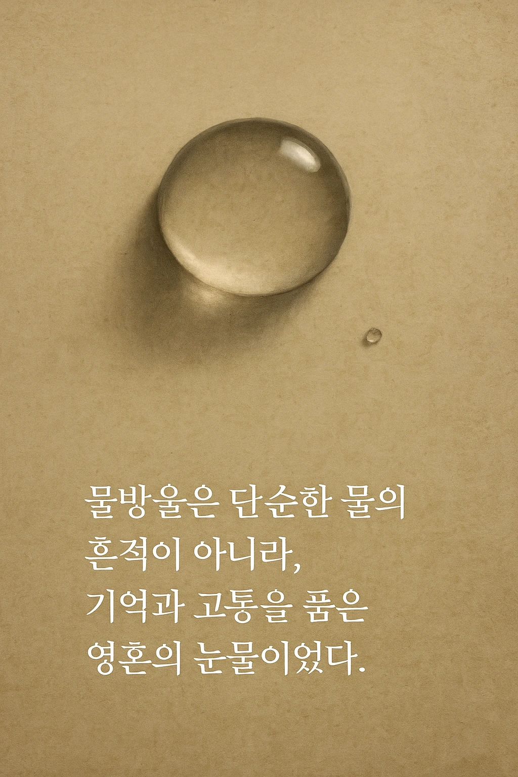 1. “물방울은 단순한 물의 흔적이 아니라, 기억과 고통을 품은 영혼의 눈물이었다.”