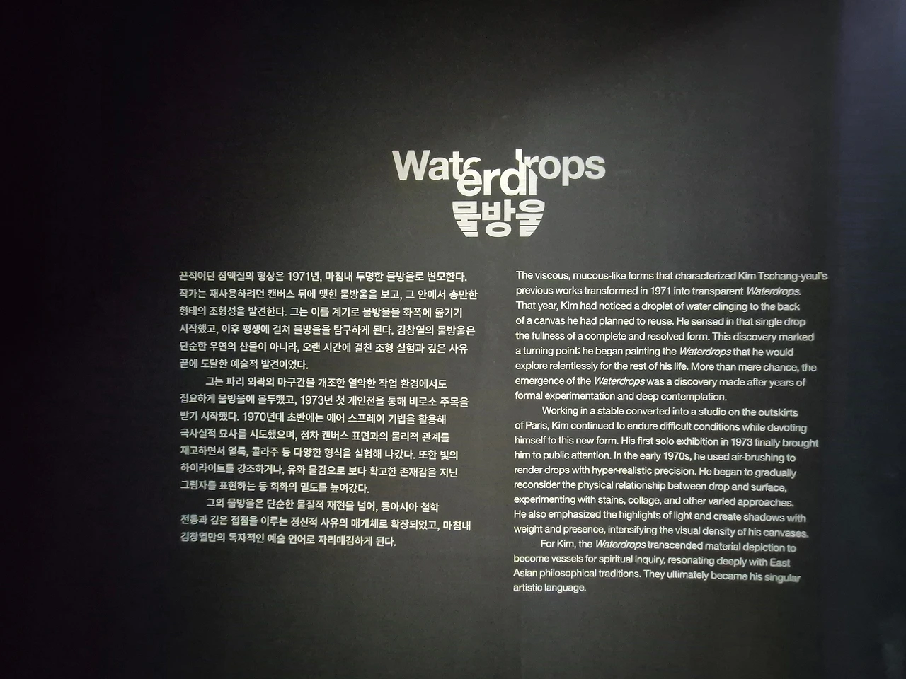 추석 연휴의 한가로운 오후, 국립현대미술관에 다녀왔다. 이번 전시는 한국 현대미술을 대표하는 거장, 김창열(1929–2021)의 삶과 예술을 총망라한 회고전이었다.