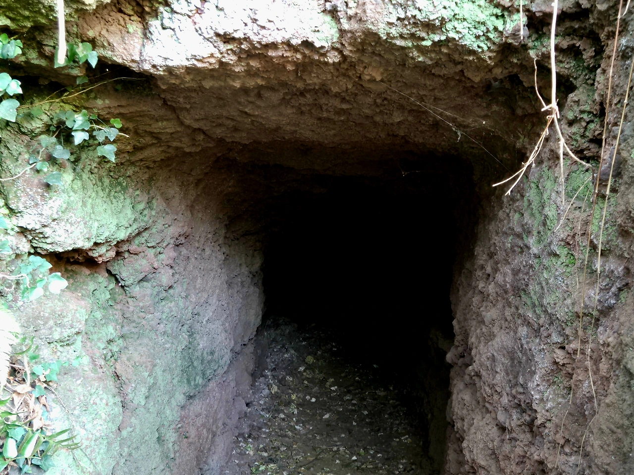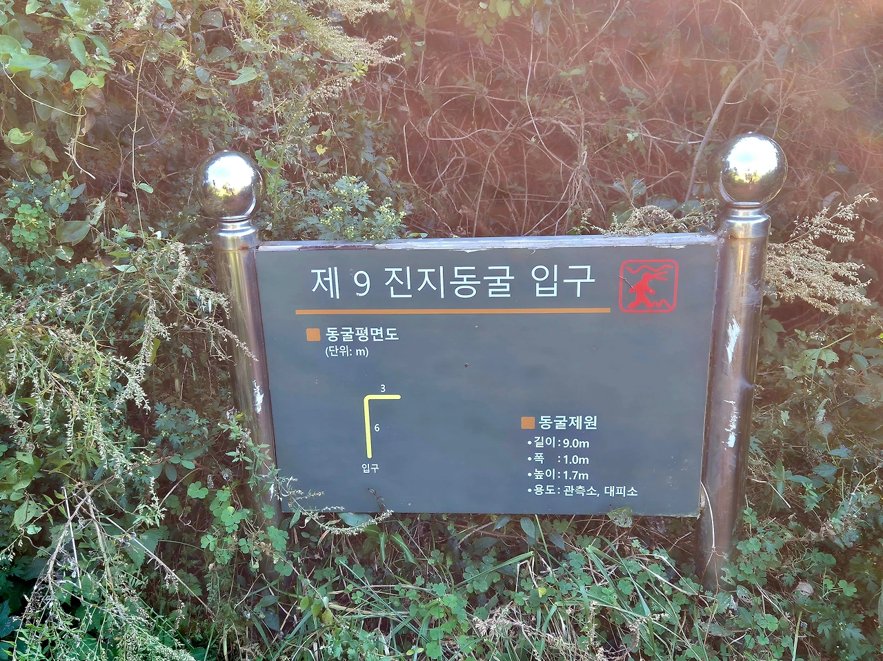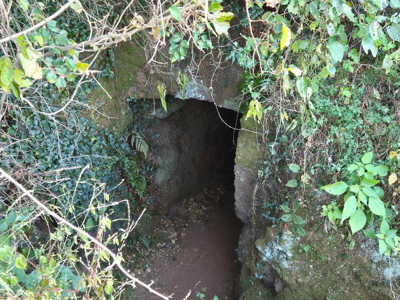 일제강점기, 일본군이 파놓은 동굴이다. 지금은 풀숲에 덮여 흔적이 희미하지만,