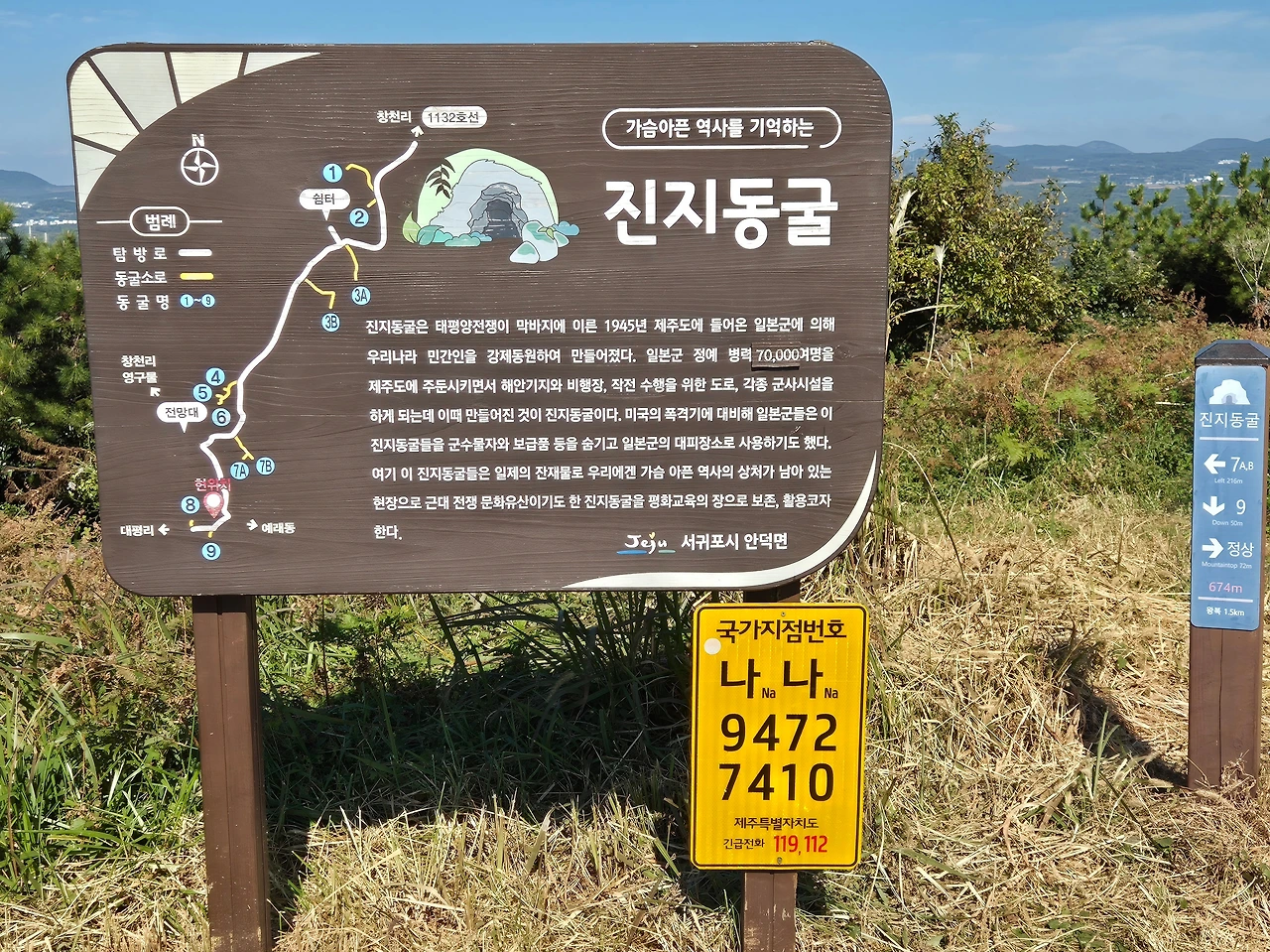 정상에서 조금 내려오면 진지동굴이 있다.