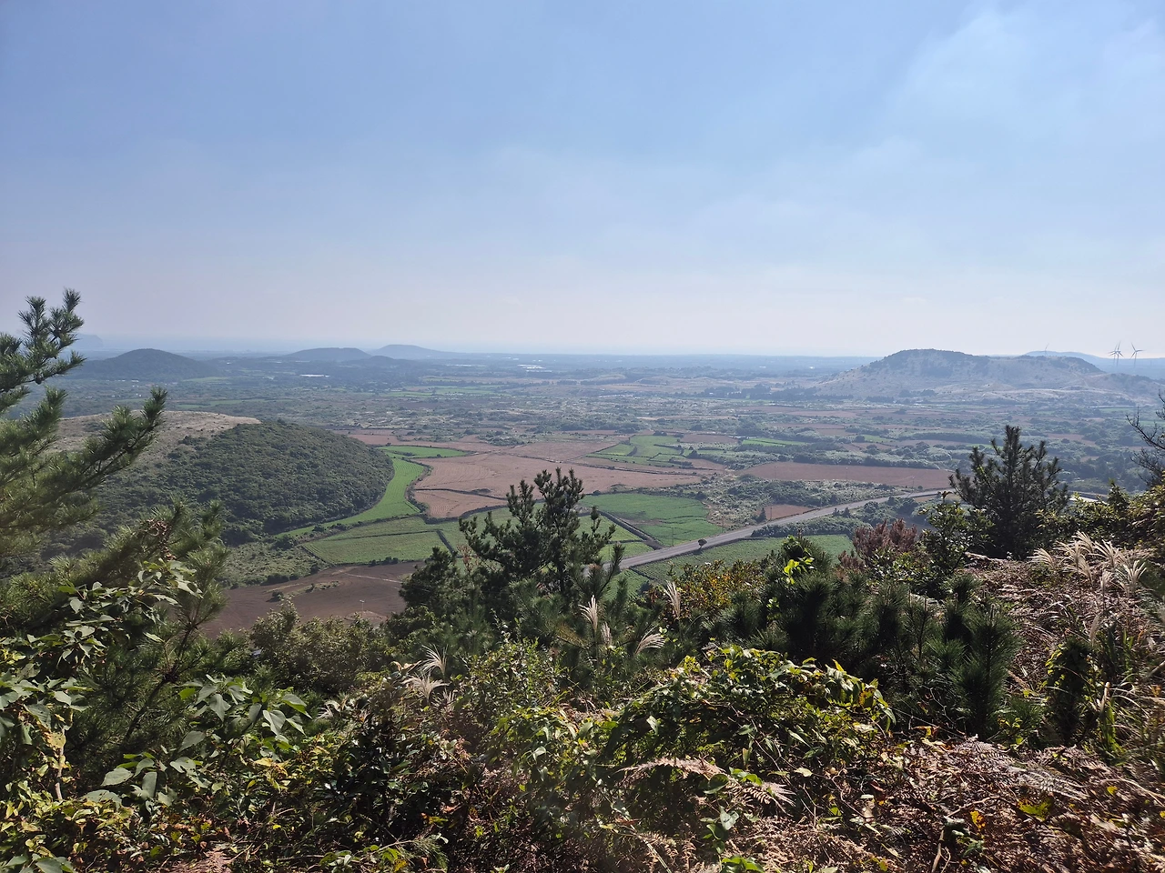 정상에 오르는 동안 녹색 밭과 푸른 바다, 그리고 멀리 성산일출봉과 우도가 한눈에 들어왔다.