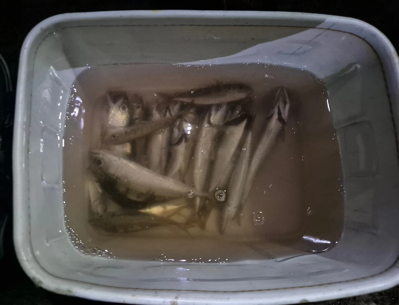 낚시 초보자도 낚을 수 있을 정도로 물었다. 다만 시장에서 보던 큼직한 30cm 고등어는 아니고, 꽁치보다 약간 두꺼운 크기였다.
