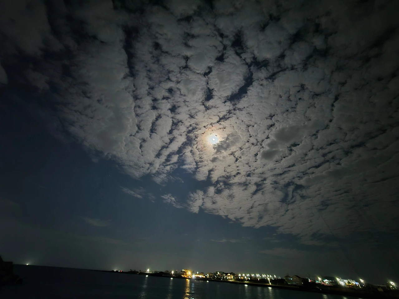 밤 9시가 되자, 붉던 달이 흰 달로 변해 구름 사이로 얼굴을 내밀 때, 드디어 고등어가 잡히기 시작했다.