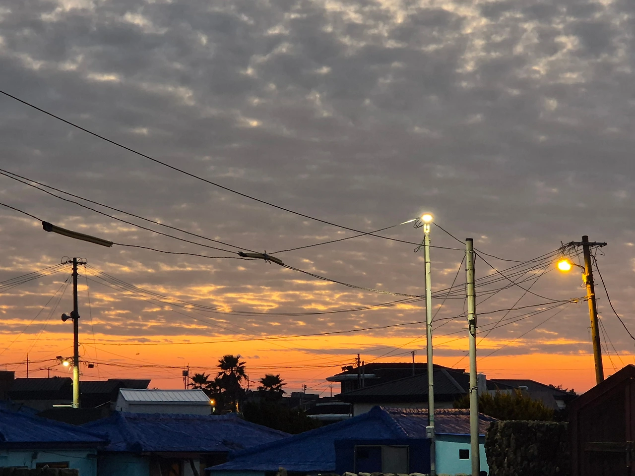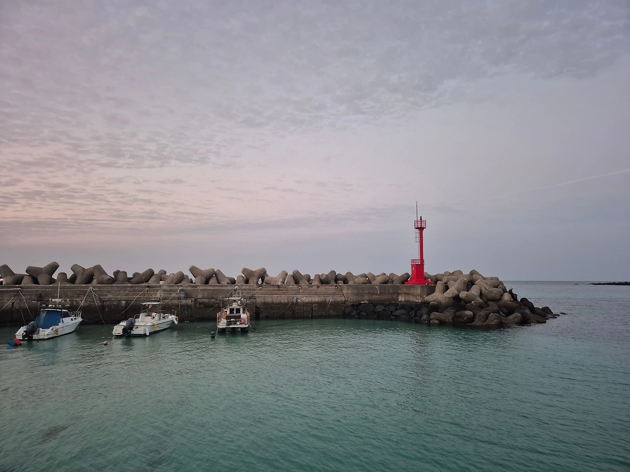 오후 늦은 비행기로 아내는 먼저 집으로 떠났다. 나는 이제부터 주말까지 친구들과 함께 보내기로 했다. 공항에서 친구 S를 픽업해, 제주에 정착한 지 5년 되는 친구 W가 사는 동복포구로 향했다. 간단히 컵라면으로 저녁을 때운 뒤, 낚싯대를 꺼냈다.
