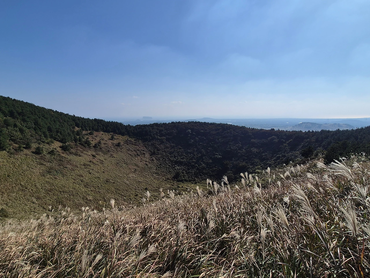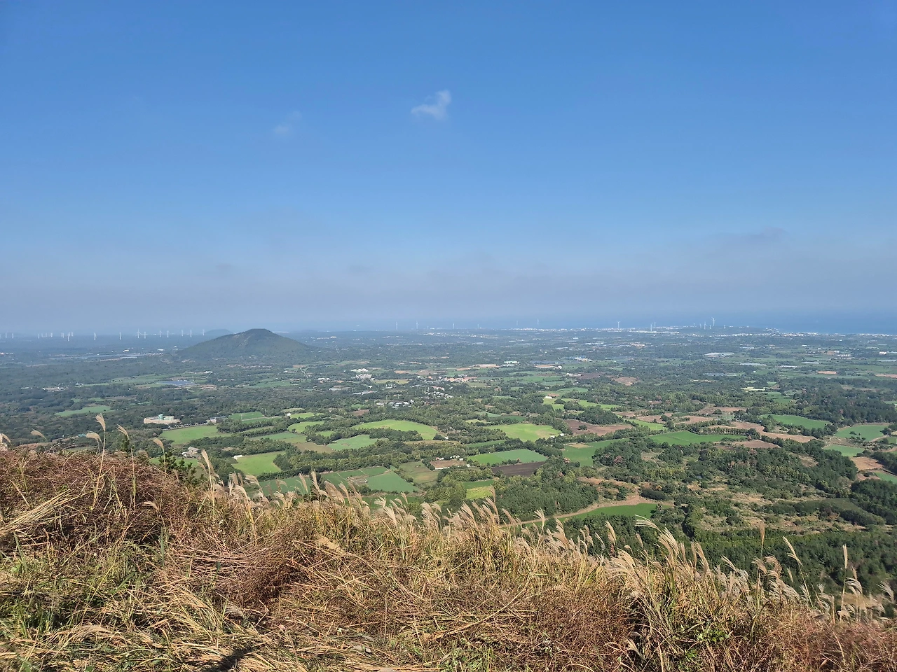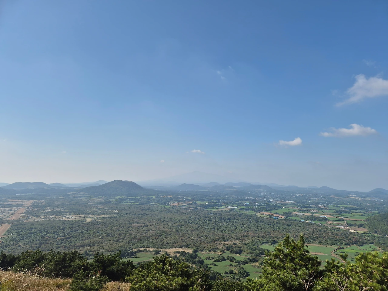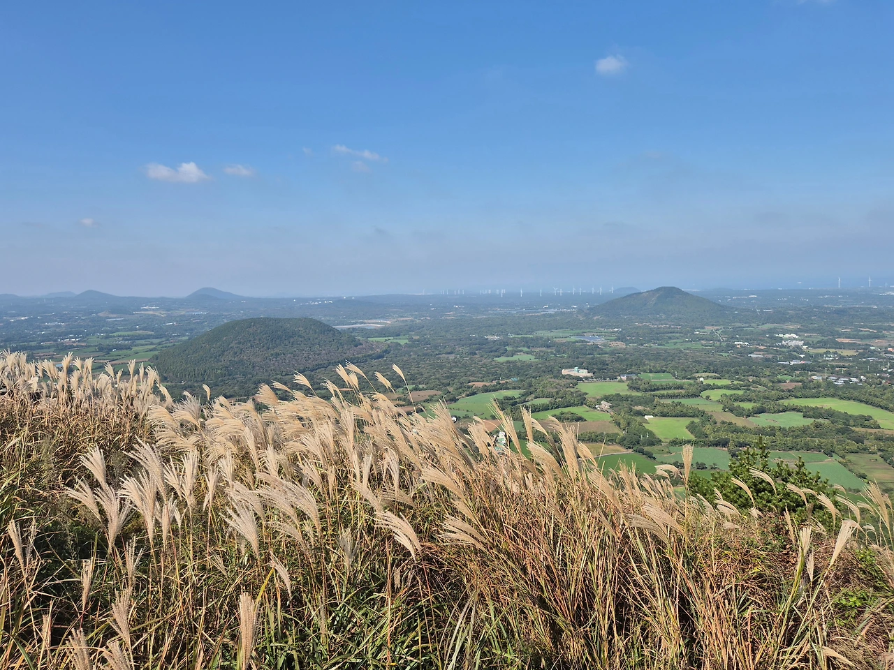 파노라마 모드로 찍은 사진에는 수많은 오름들이 겹겹이 담겼다. 하지만 나중에 사진을 보니, 눈으로 본 풍경에는 미치지 못했다. 빛이 담긴 바람과 향기는 사진 속에 남지 않아서일까.