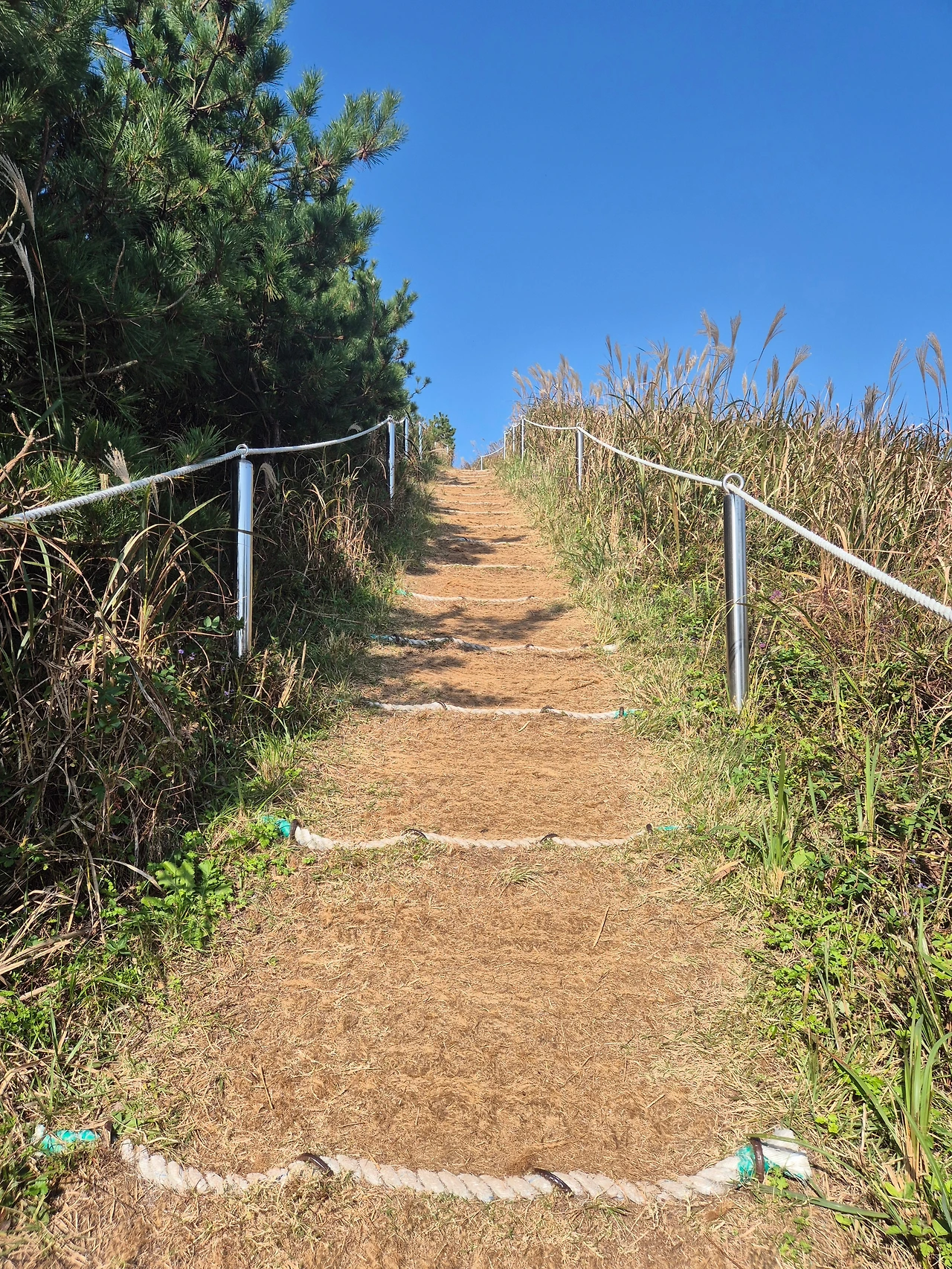 돌길이 많았던 노꼬메오름과 달리, 이곳은 야자수 매트와 나무 계단길이 이어져 있었다.