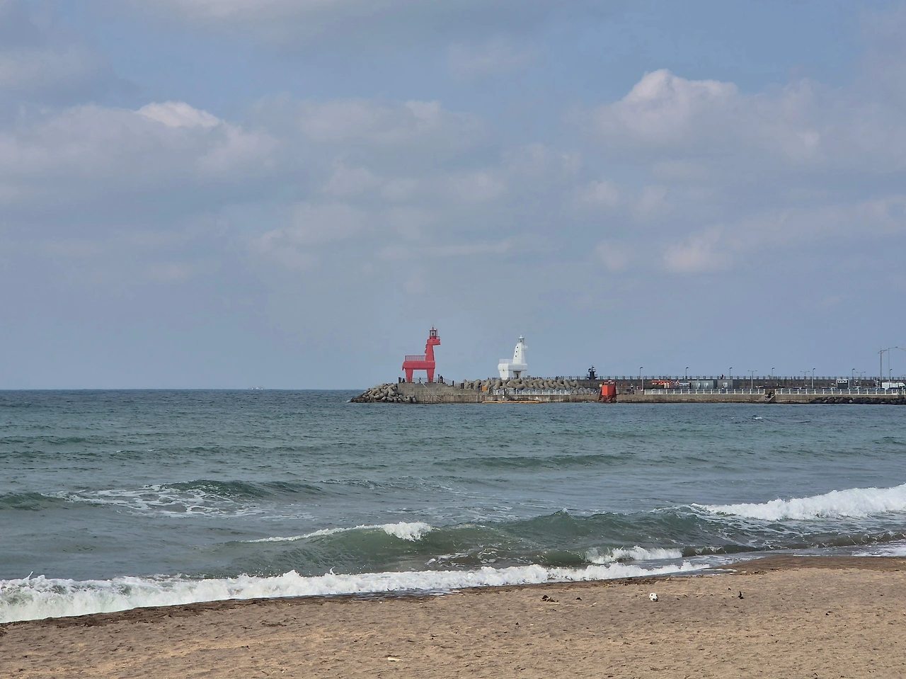 멀리서 배가 느릿하게 물살을 가르고, 갈매기는 끼룩끼룩 날고 있었으며, 낚시꾼의 실루엣은 점처럼 느껴졌다.