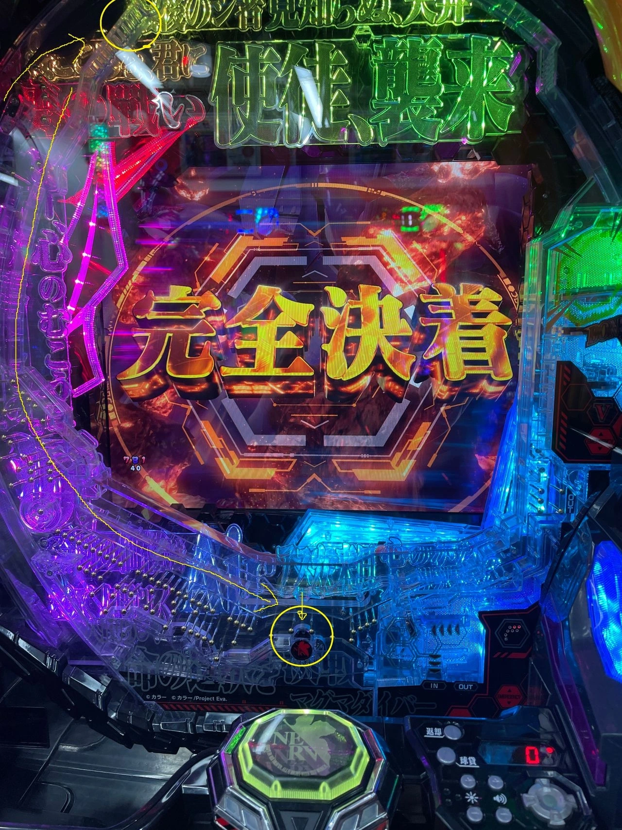그리고 5백 엔만큼 첫 바퀴가 돌자마자, 그 자리에서 별빛이 터졌다.