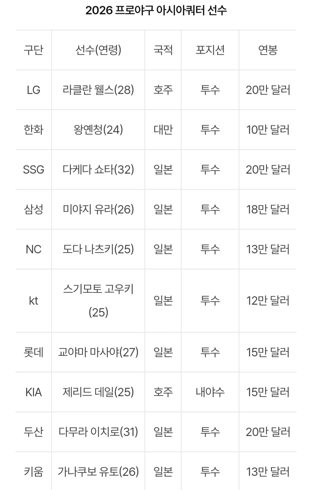 “아시아쿼터”라는 문구 속에 숨겨진 것은 얼마나 많은 팀이 ‘즉시 전력감’ 투수를 필요로 했는가였다.